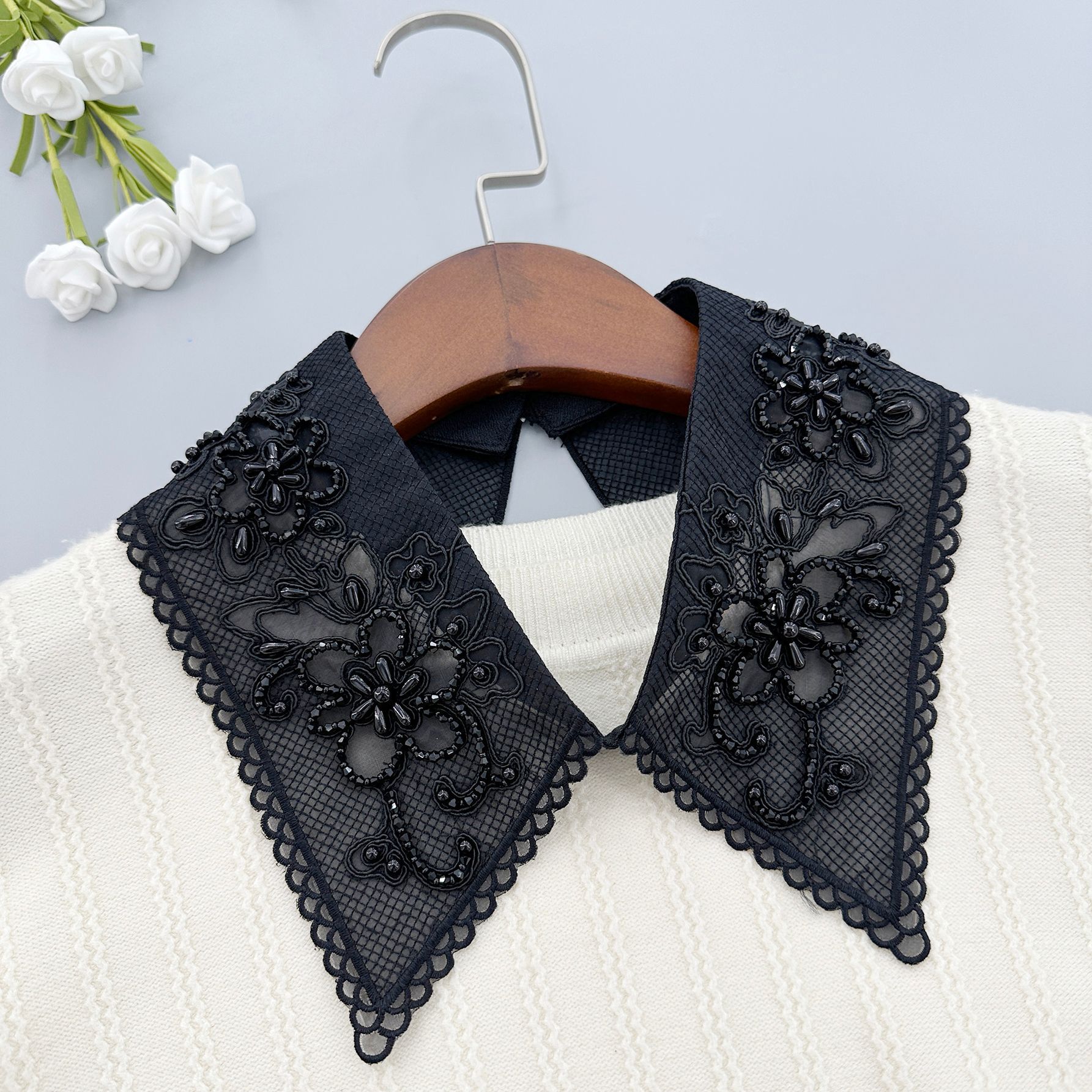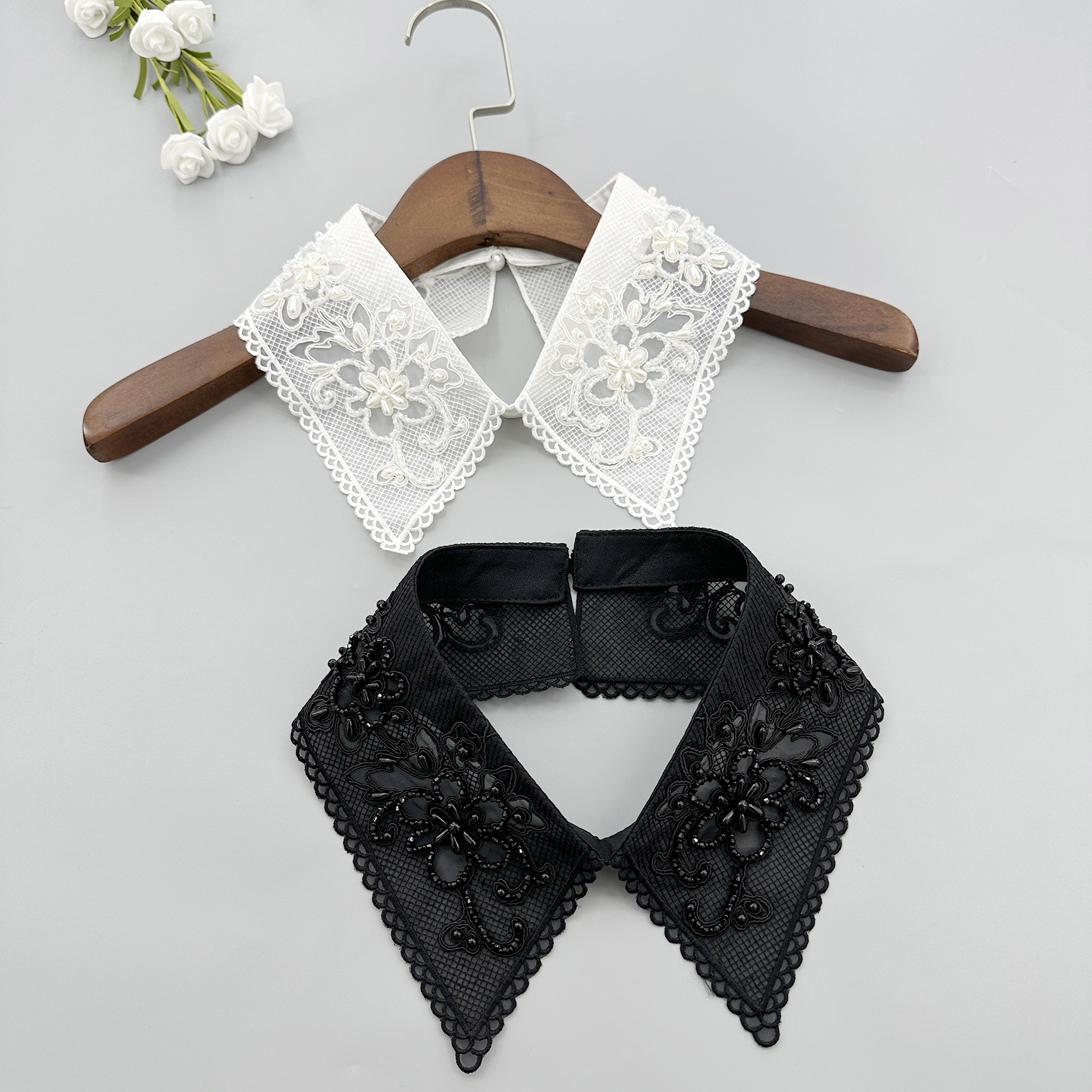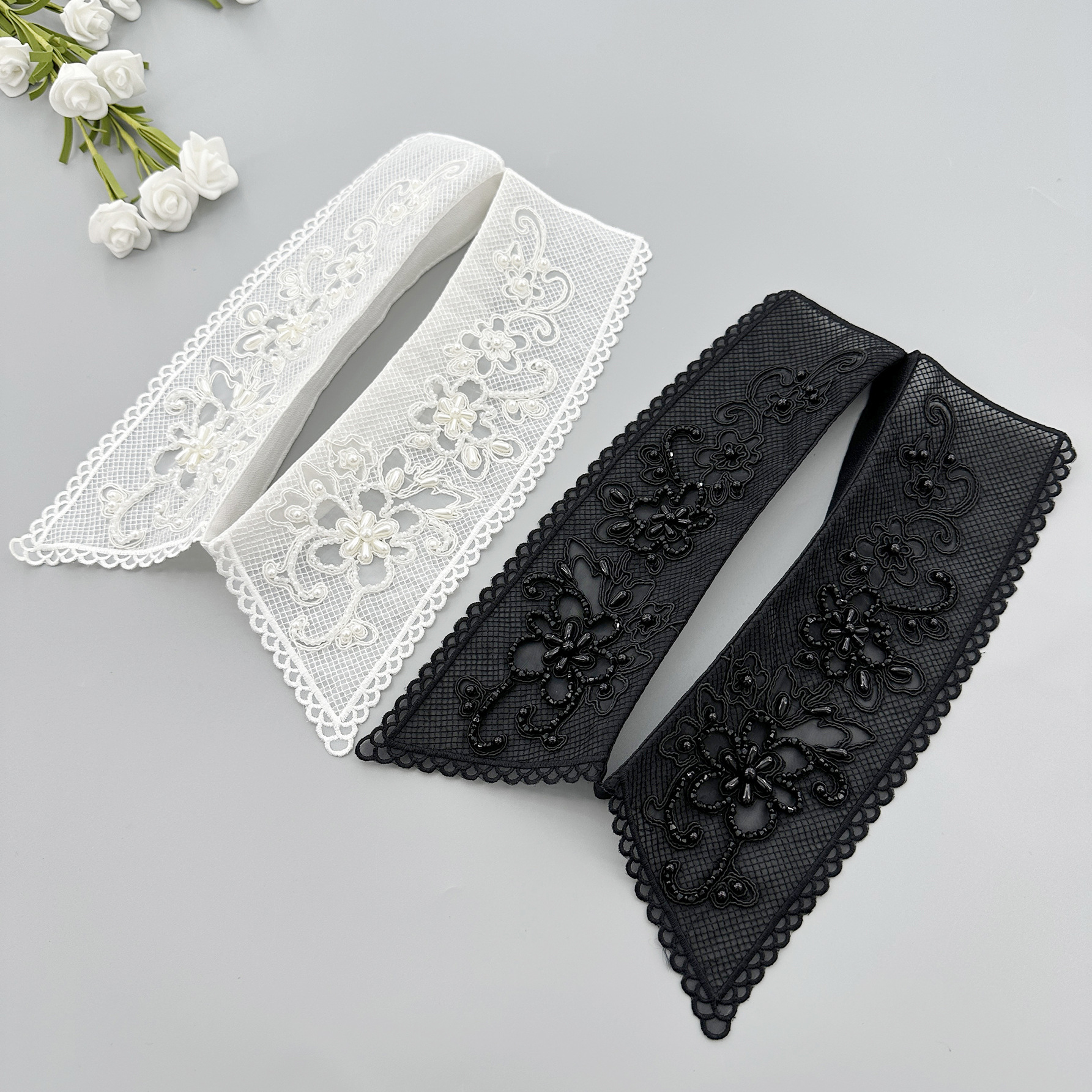 | nameOriginal | Fashion popular bone thread embroidery hollow embroidery heavy craft beads new black and white small item fake collar |