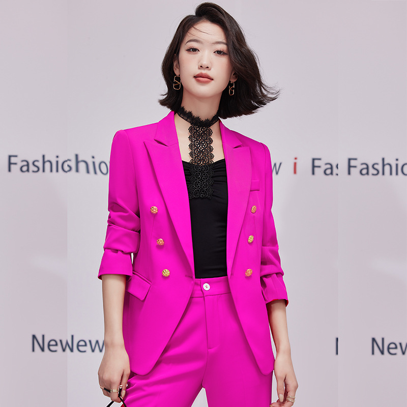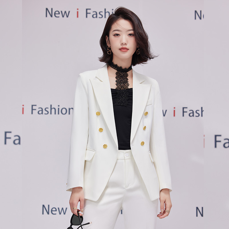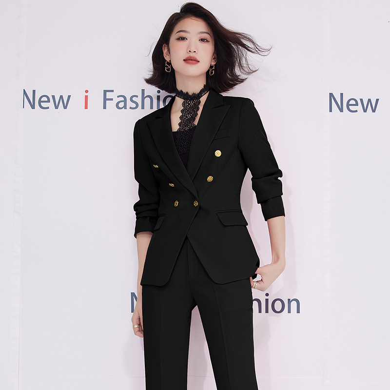 Fashion Professional Suit Women's Temperament Casual Double-breasted British Style Spring and Autumn Host Interview Women's Clothing
