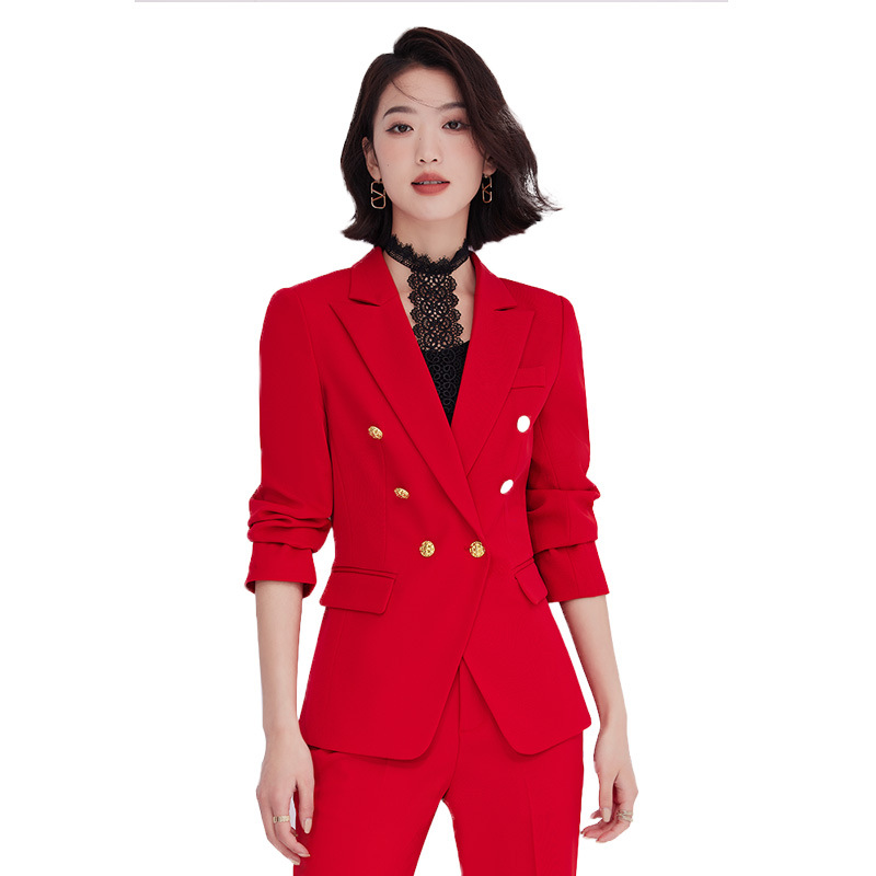 Fashion Professional Suit Women’s Temperament Casual Double-breasted British Style Spring and Autumn Host Interview Women’s Clothing