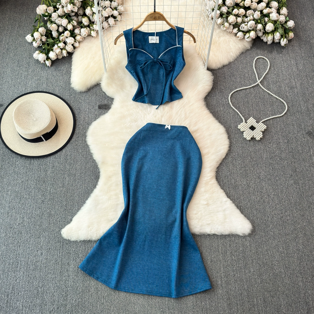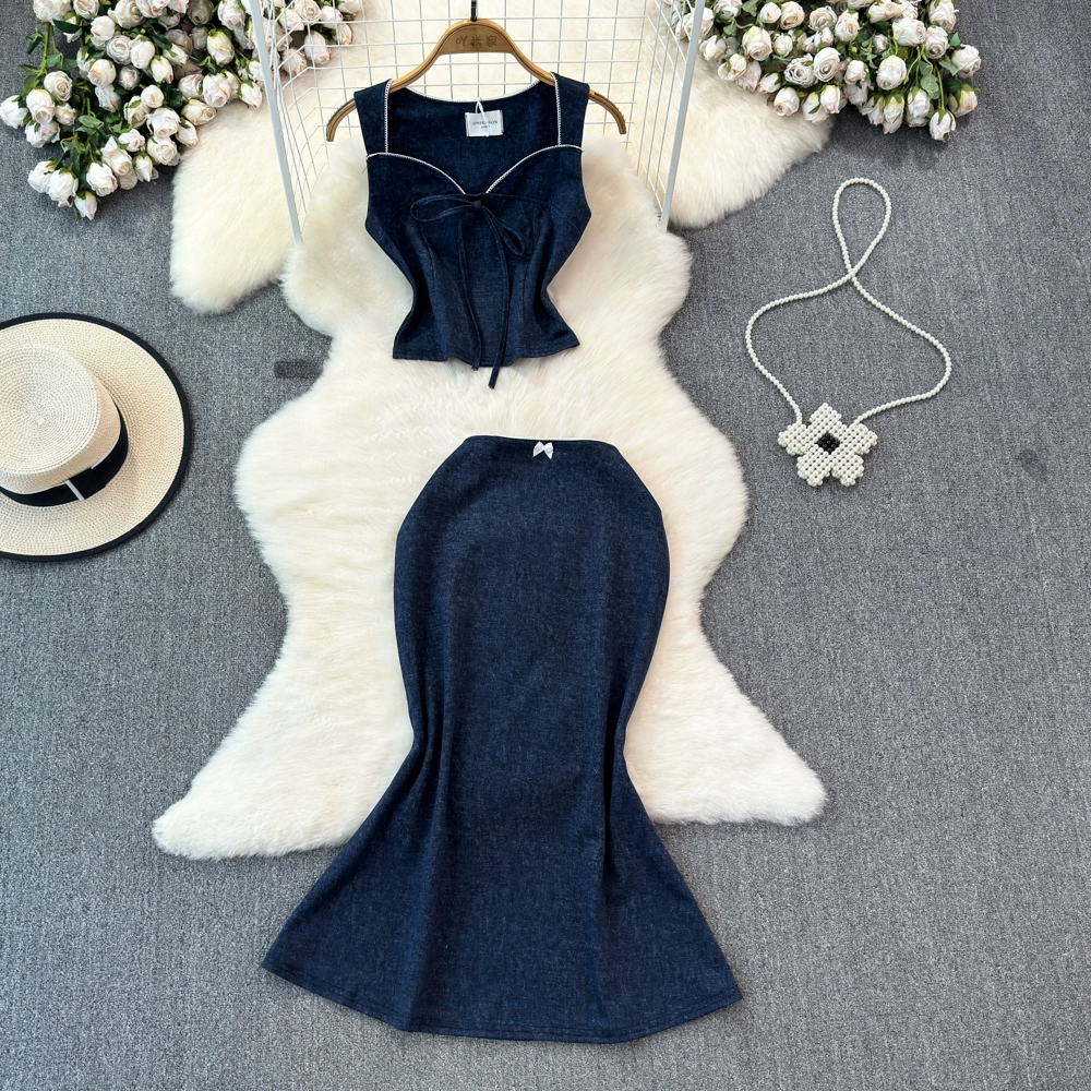 | nameOriginal | Fashion set hot girl sleeveless top two-piece summer fat hip wide high waist slimming hip fishtail skirt |