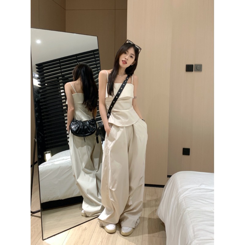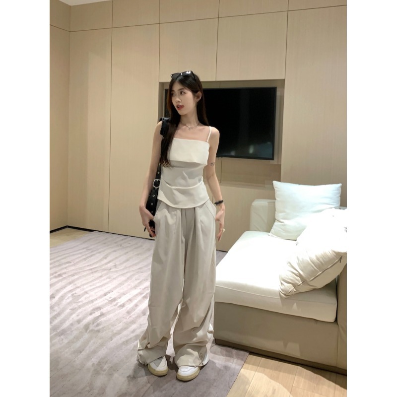 Fashion Set Women's Design Sense Camisole Top Summer New Loose Workwear Wide Leg Pants Elegant Two-piece Set