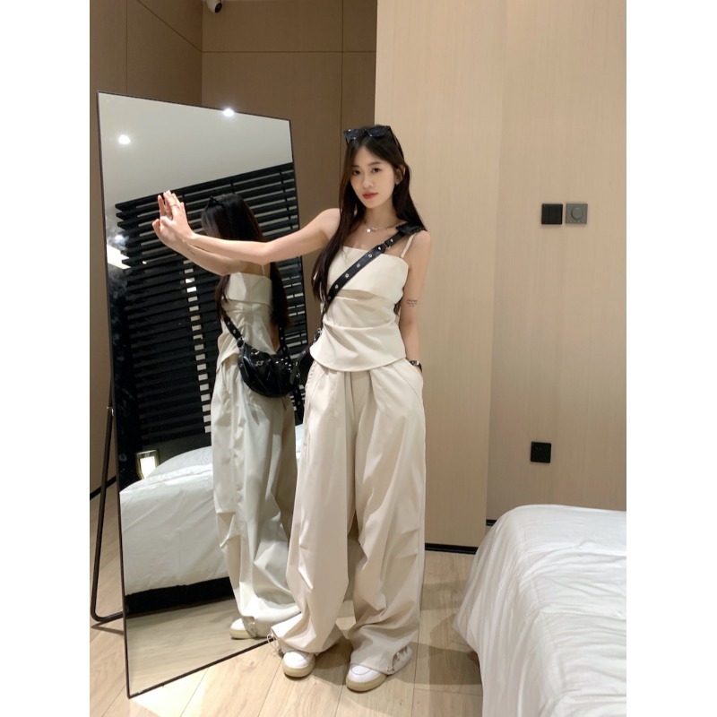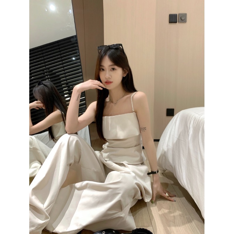 Fashion Set Women’s Design Sense Camisole Top Summer New Loose Workwear Wide Leg Pants Elegant Two-piece Set