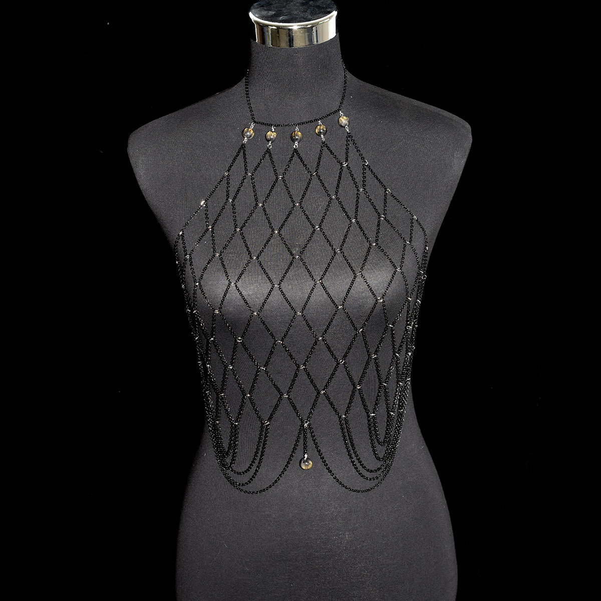 Fashion Sexy Diamond Grid Body Chain Popular Beaded Personality Bra Chain Music Festival Party Banquet Dress Chain