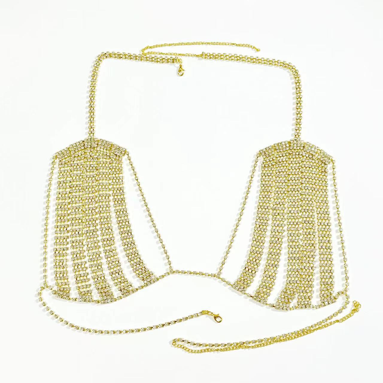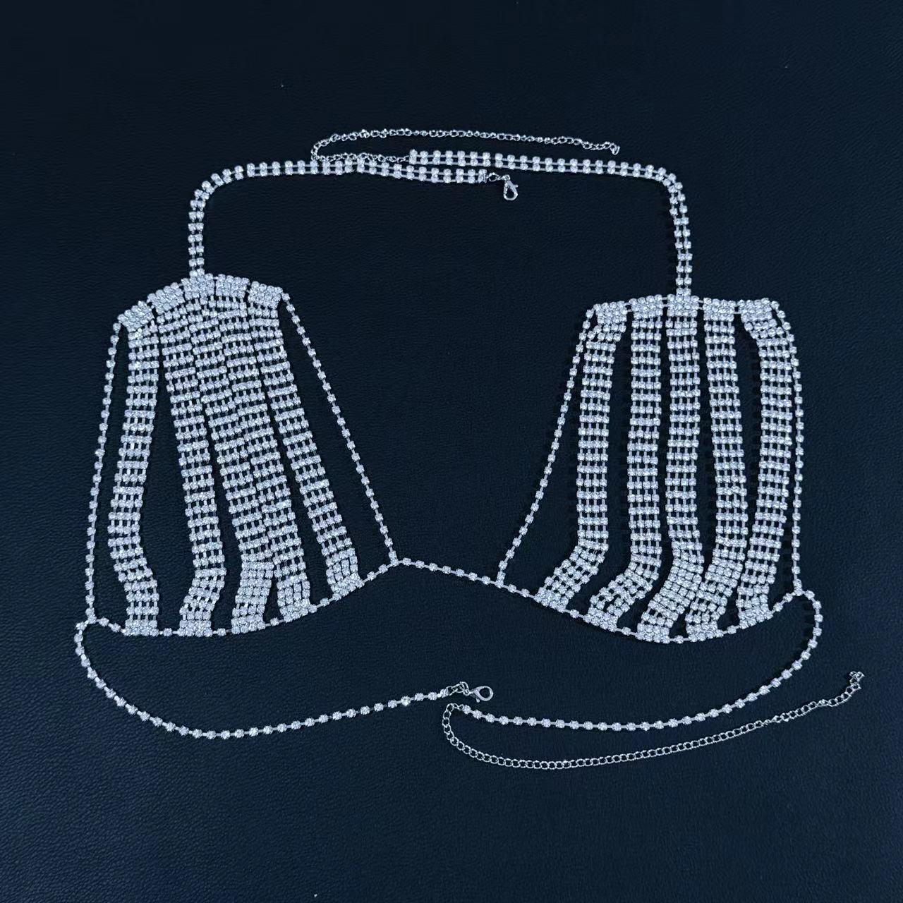 | nameOriginal | Fashion Sexy Rhinestone Full Diamond Chest Chain Personalized Exaggerated Vertical Shiny Rhinestone Bra Body Chain |