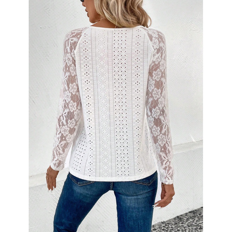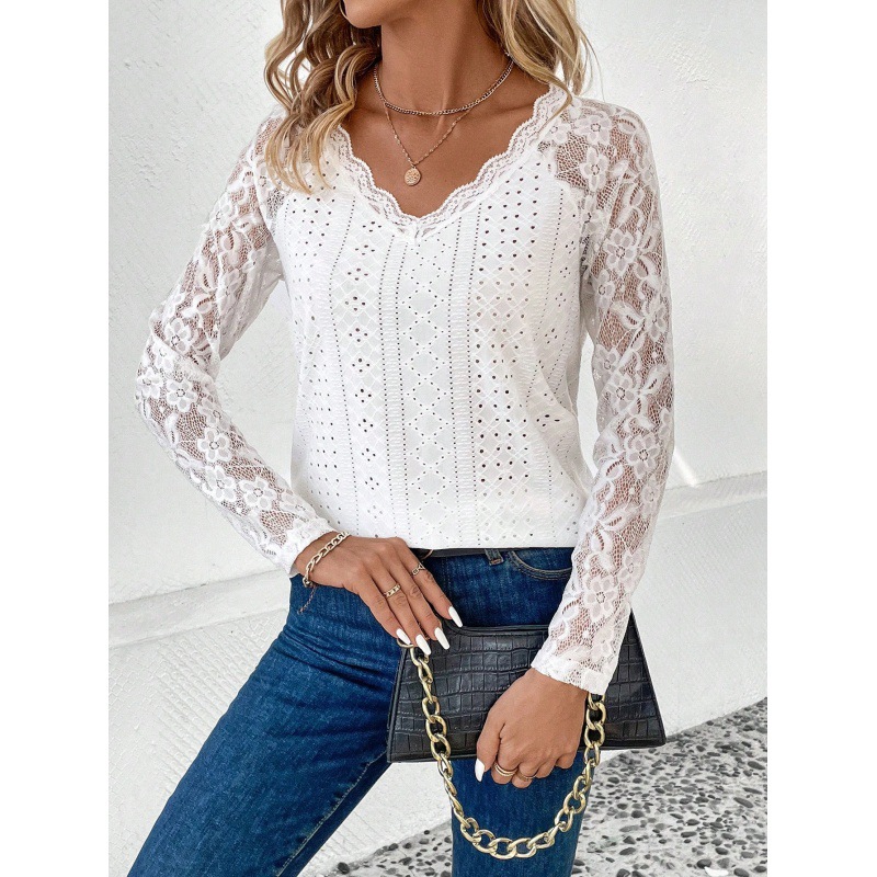 | nameOriginal | Fashion small shirt for women 2024 spring new cross-border foreign trade European and American Amazon long sleeve lace stitching hollow top |