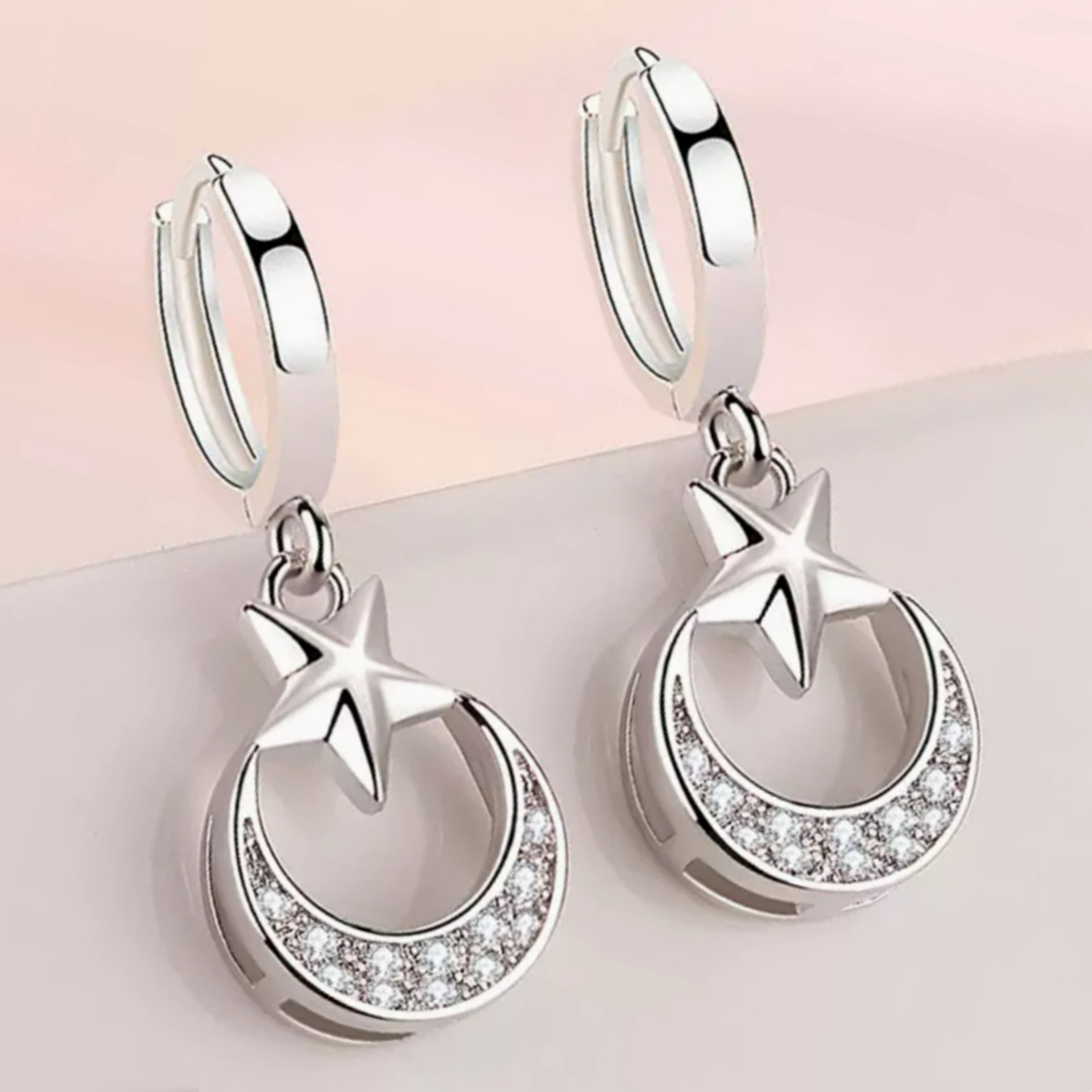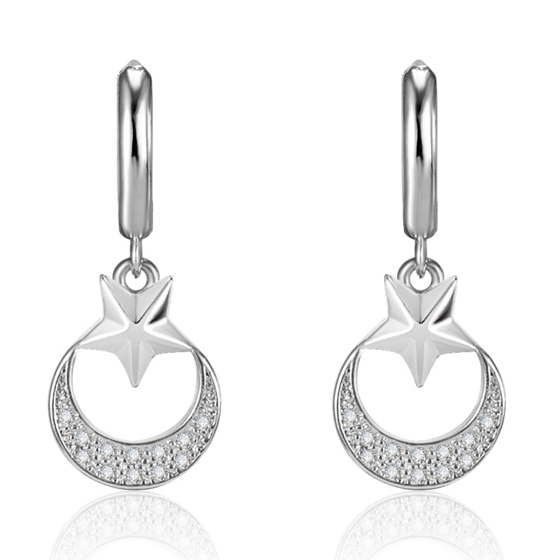 Fashion Star Moon Diamond Ear Buckle Earrings Ear Jewelry Plated Platinum Star Moon Zircon Ear Buckle Wholesale