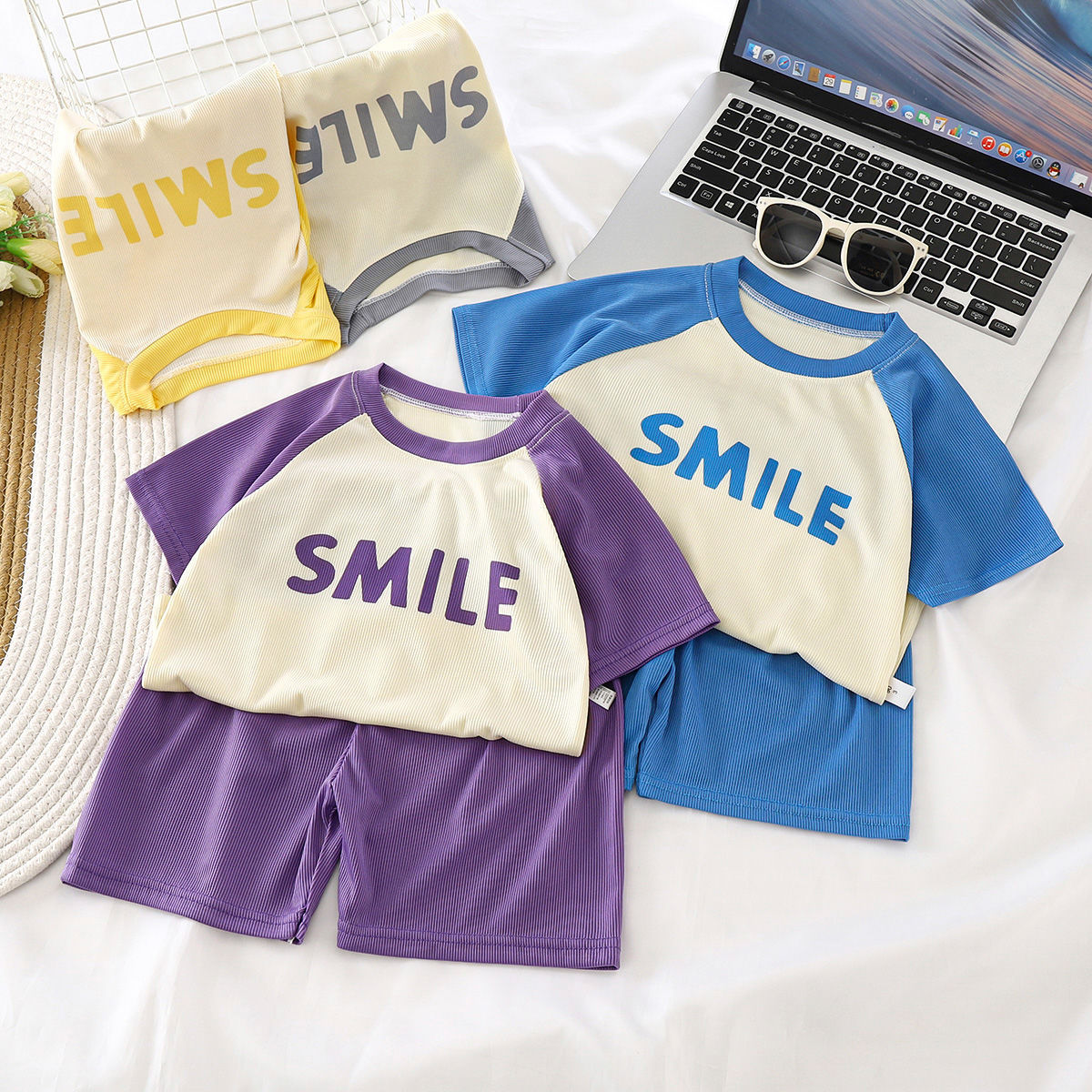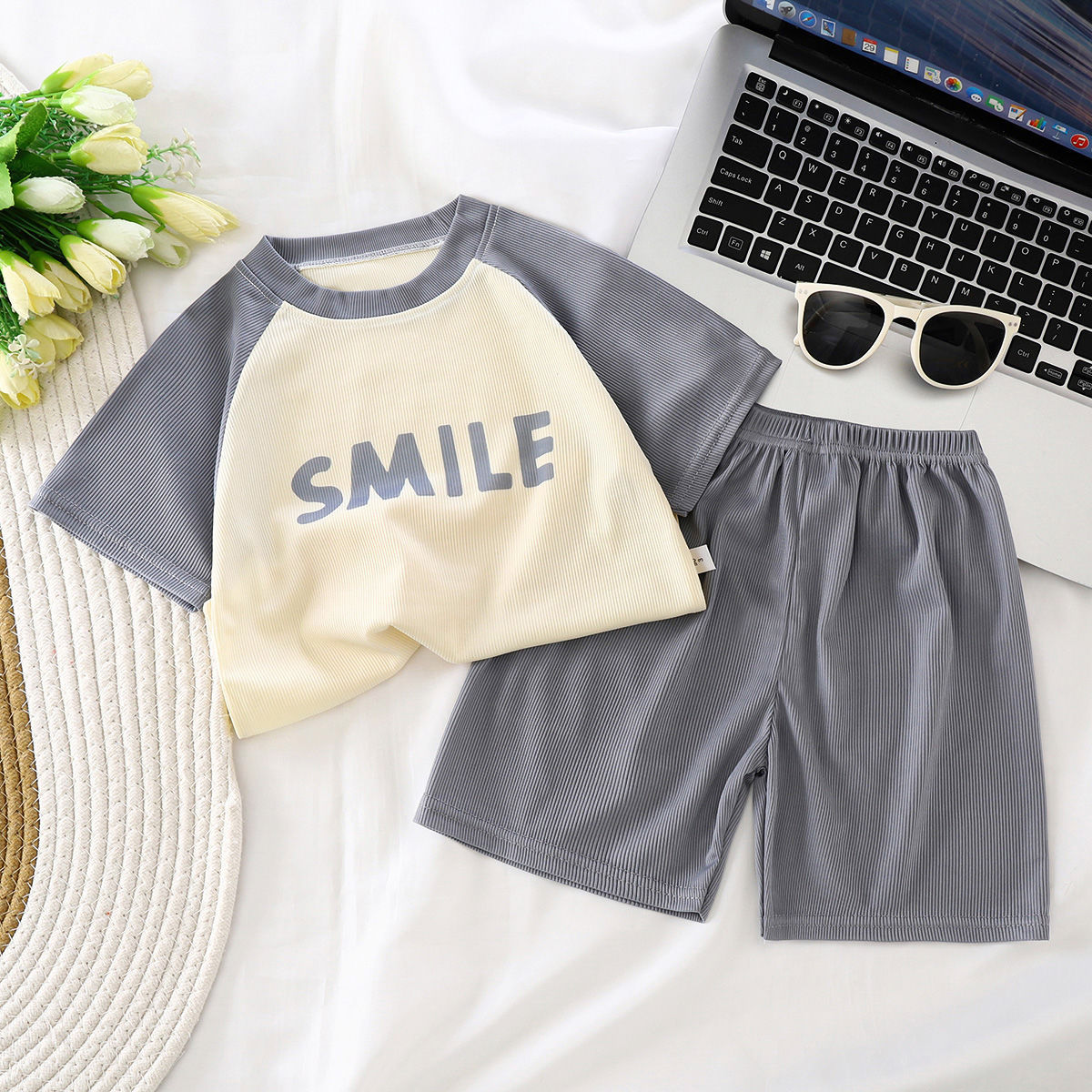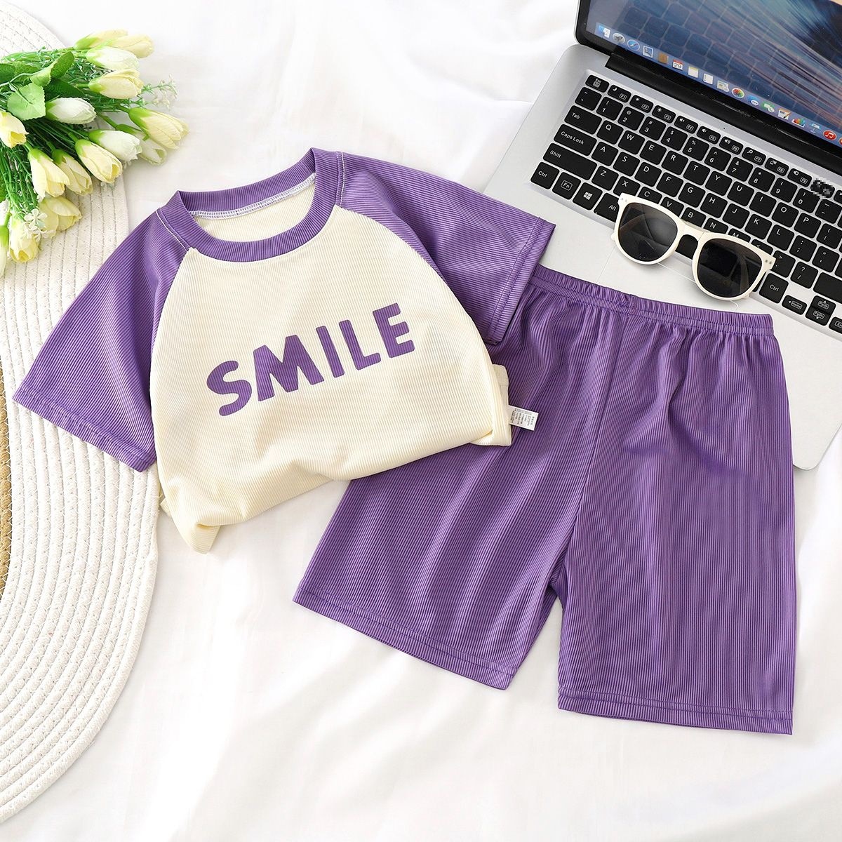 Fashion Stitching Summer Short-sleeved suit Year Thin Western Style Shorts Two-piece Summer Dress 2024 Children’s Korean T-shirt