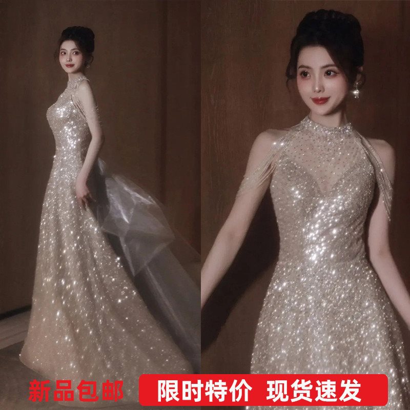 | nameOriginal | Fashion style golden bride toast dress morning robe birthday party performance host wedding dress 19626Q |