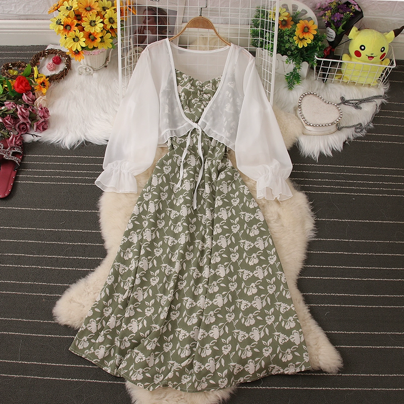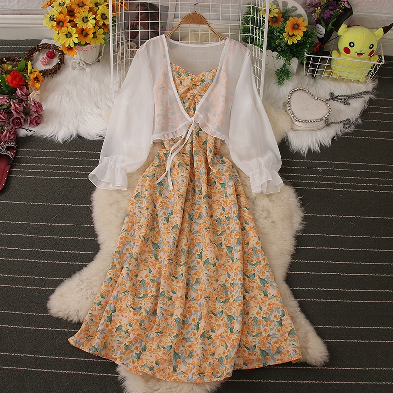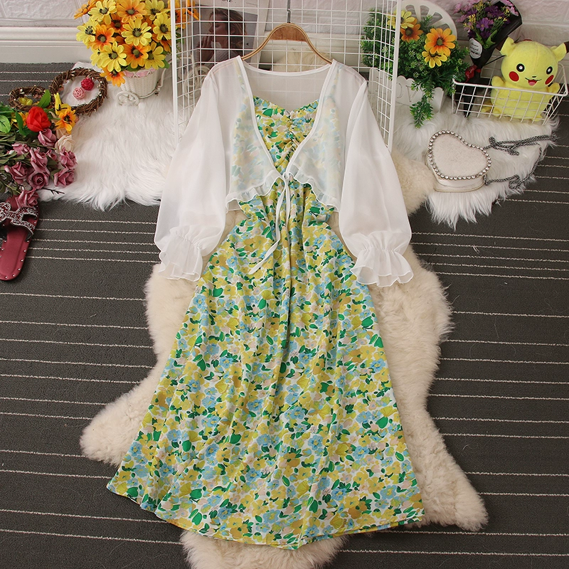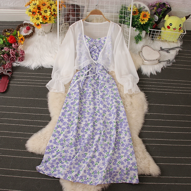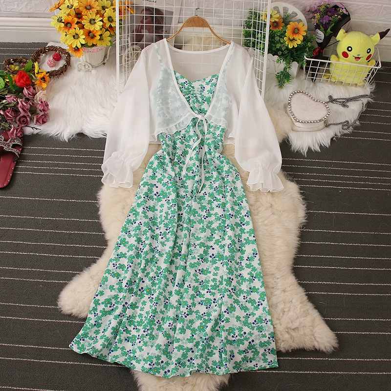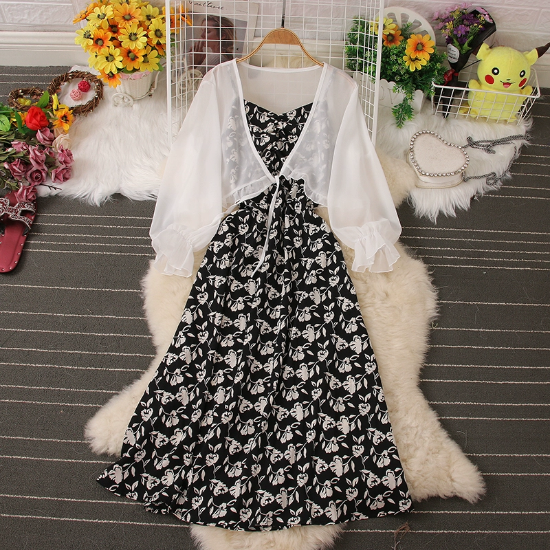 | nameOriginal | Fashion suit floral dress summer new style chiffon sun protection clothing cardigan jacket backless suspender two-piece set |