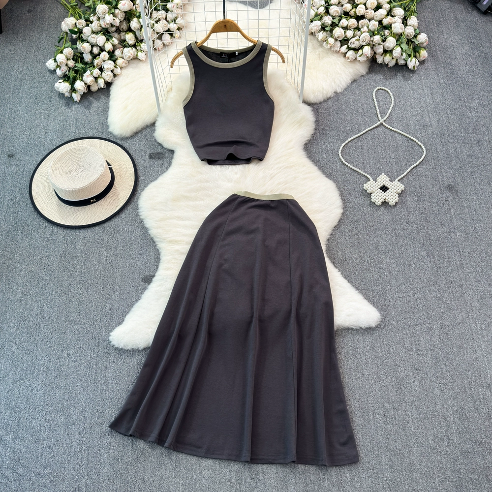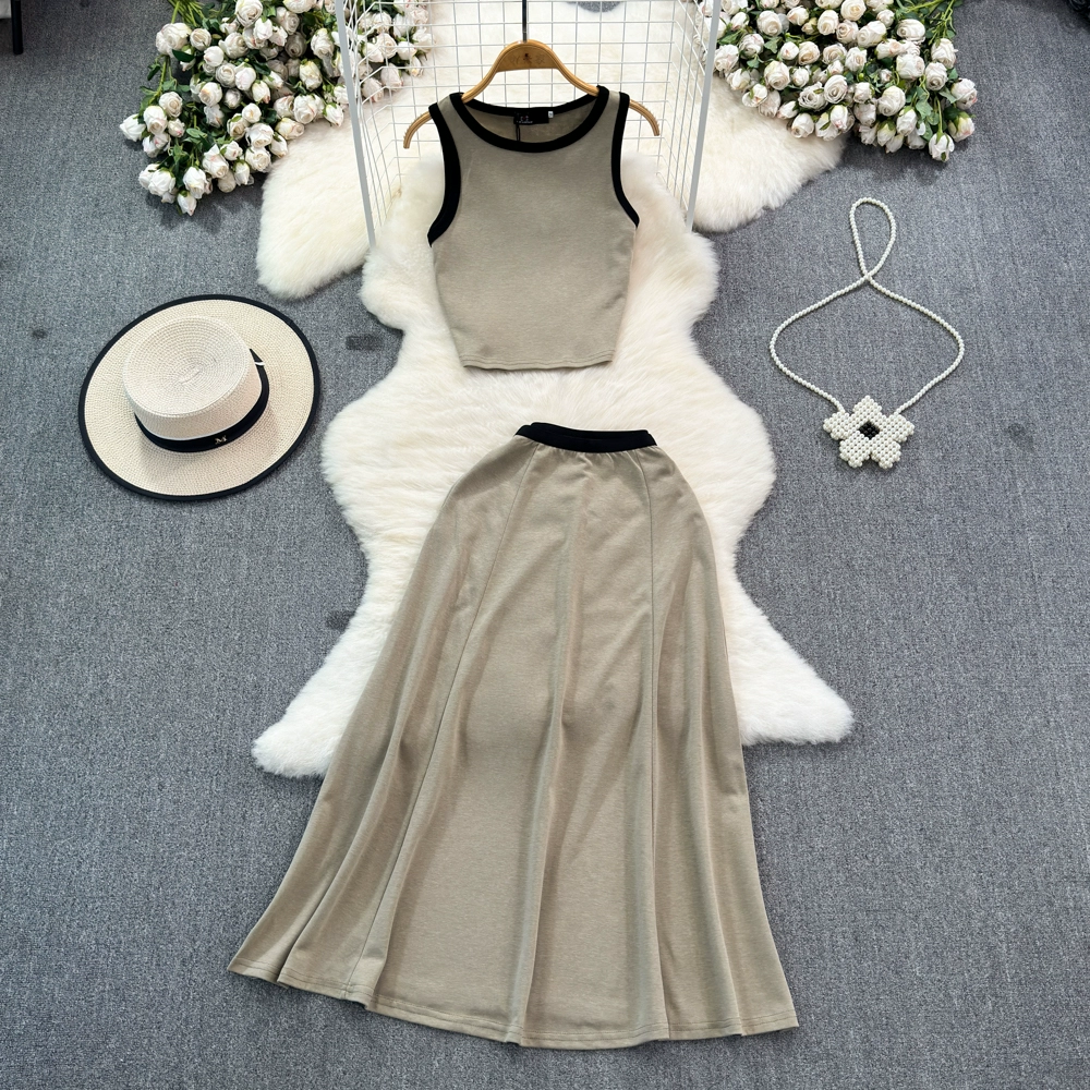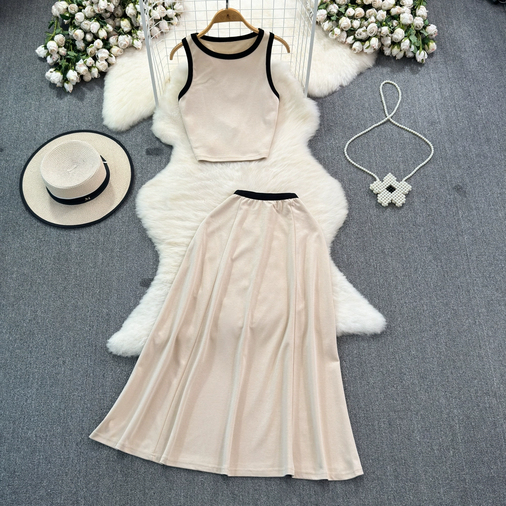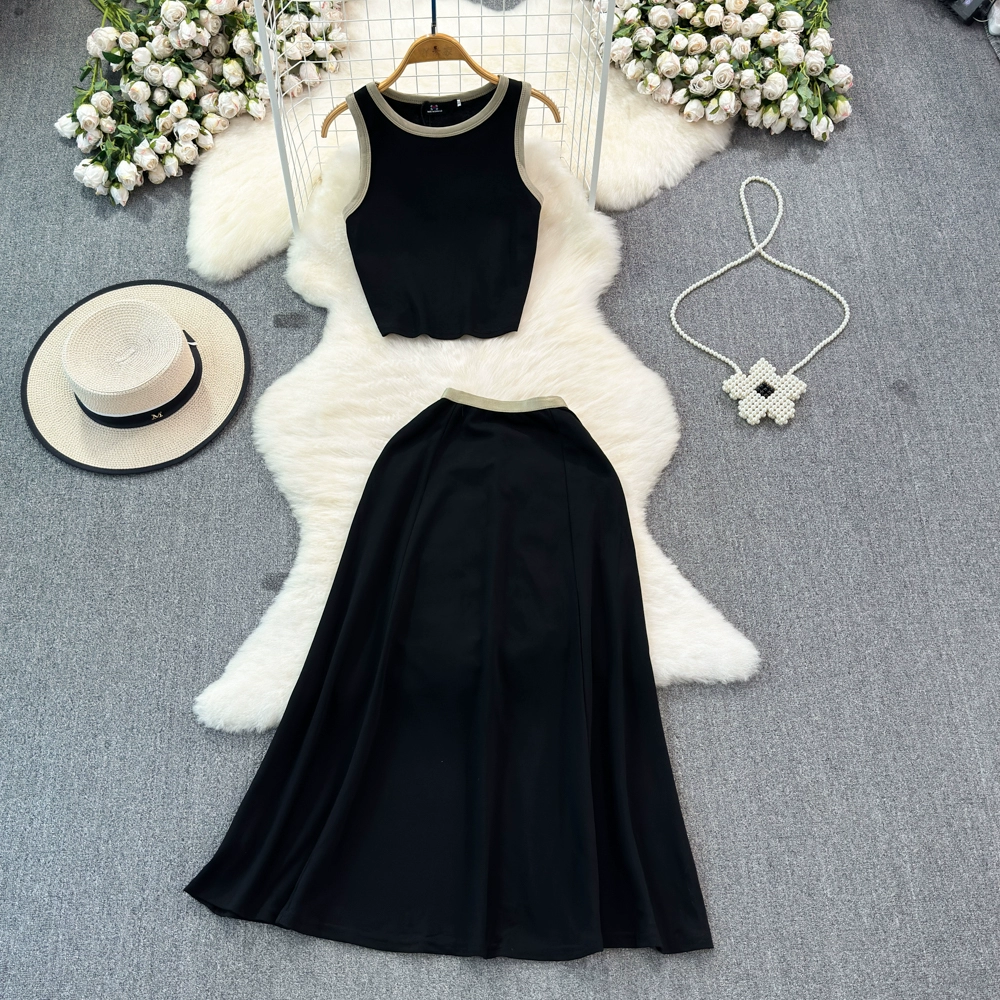Fashion suit for women Korean style slim short suspender vest two-piece set high waist slimming A-line skirt summer