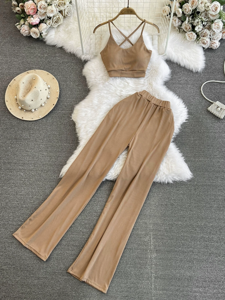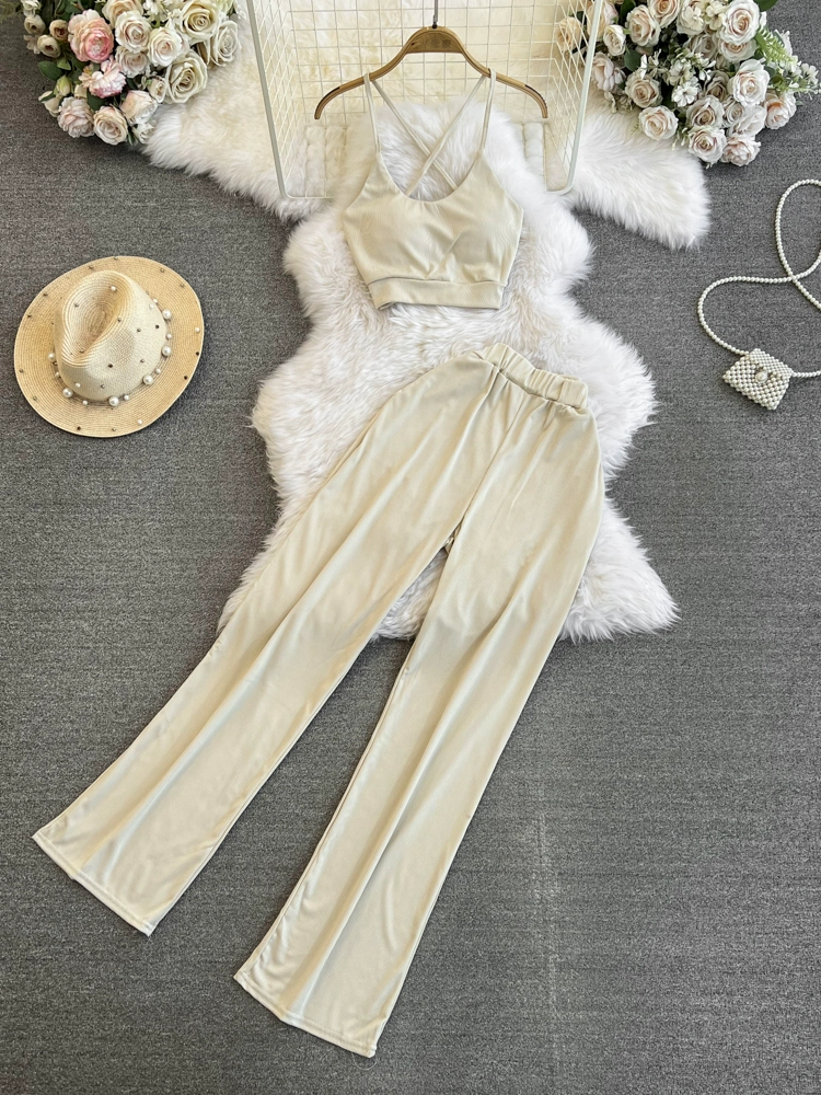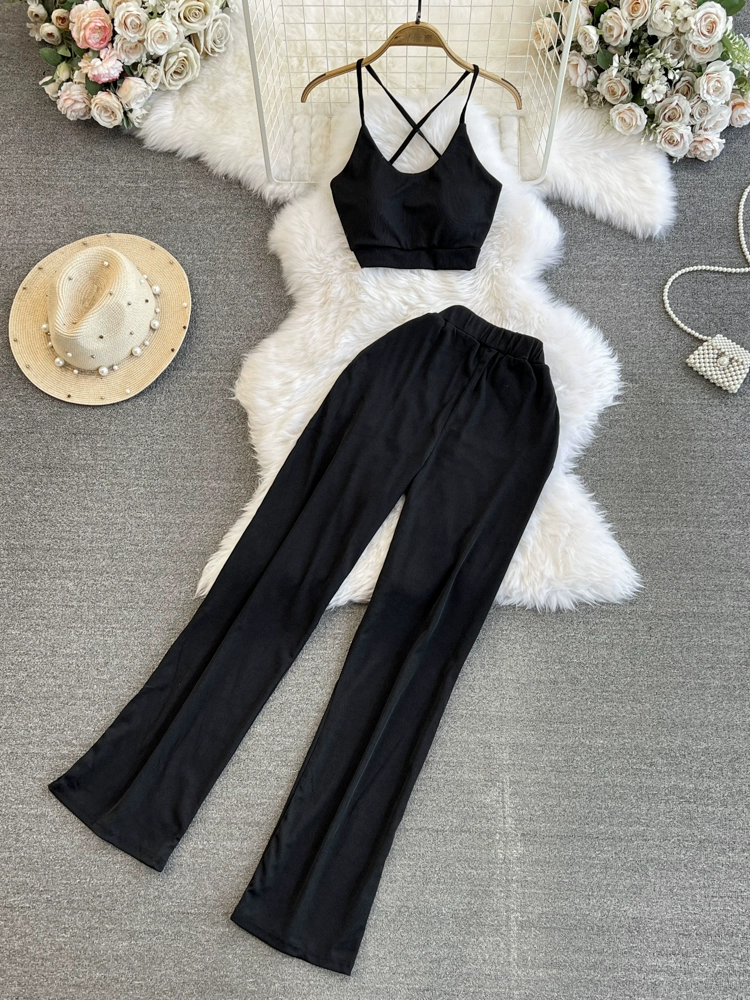 | nameOriginal | Fashion suit for women, Korean style sweet girl crossover backless camisole two-piece set casual high-waisted straight wide-leg pants |