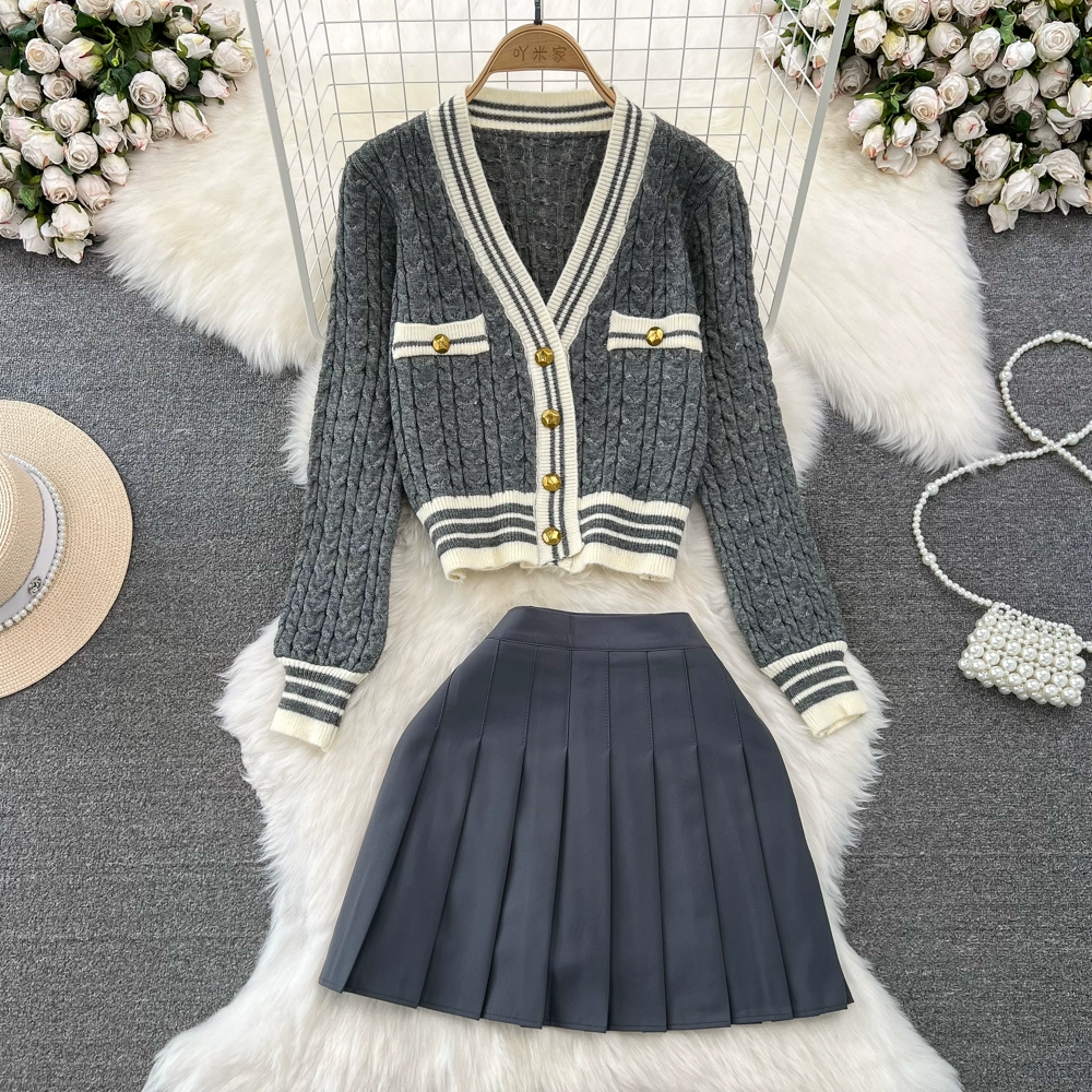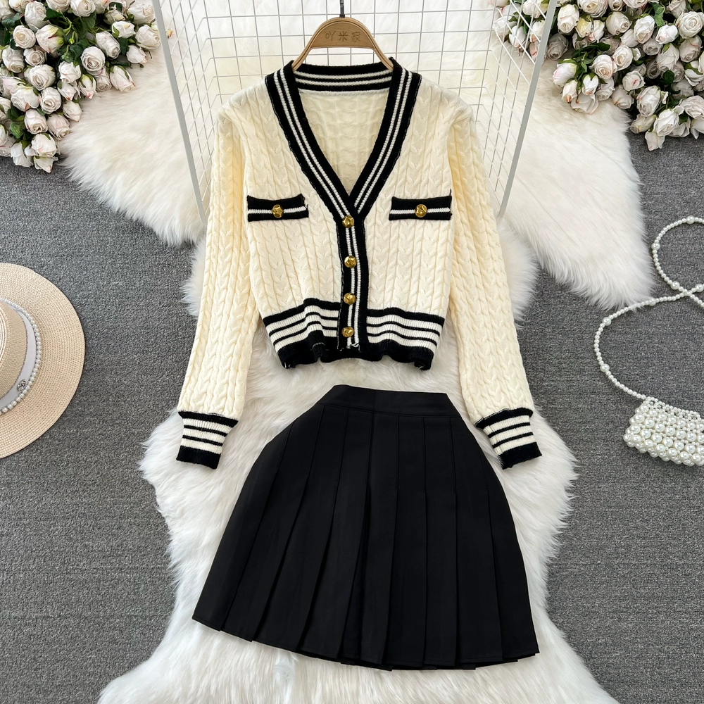 | nameOriginal | Fashion suit for women, small fragrant style, V-neck, single-breasted, twist sweater, cardigan, coat, two-piece set, high-waisted skirt, autumn |