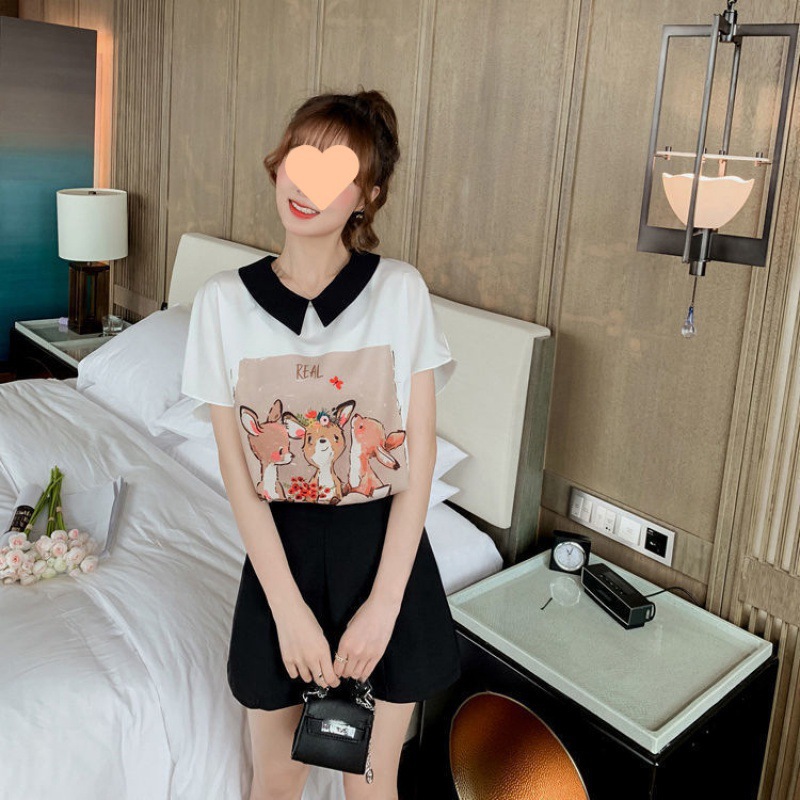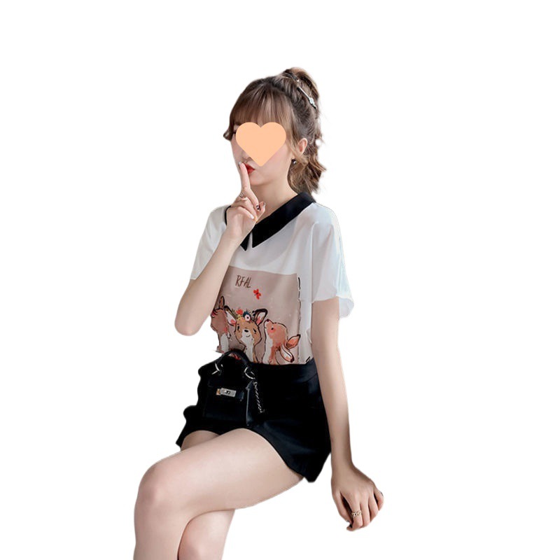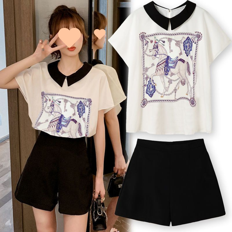 | nameOriginal | Fashion suit Women's New Loose Batwing Sleeve Chiffon Shirt Plus Shorts Two-piece suit Girl Student's Western Style Small Shirt |