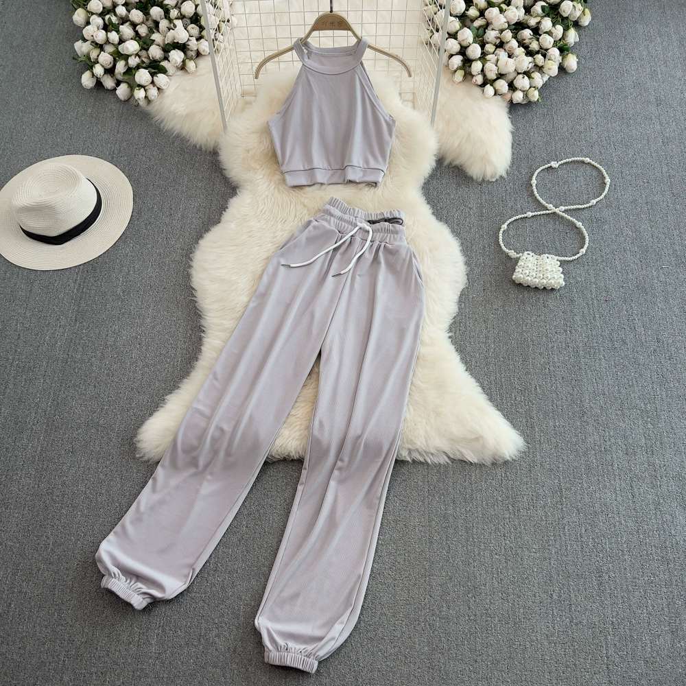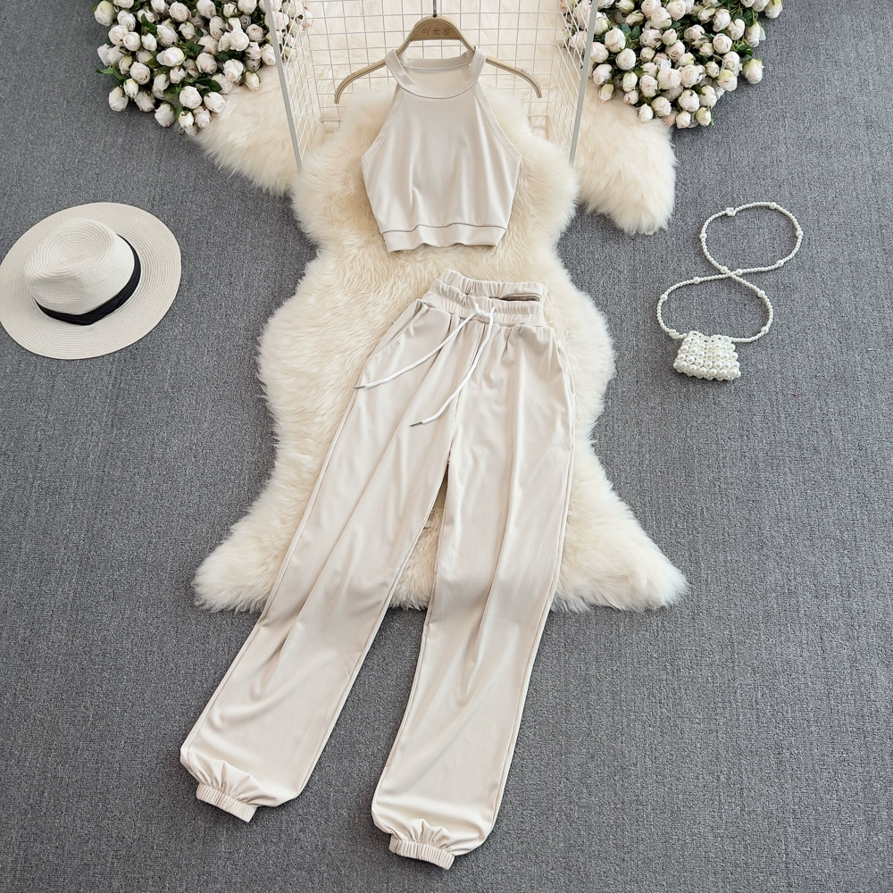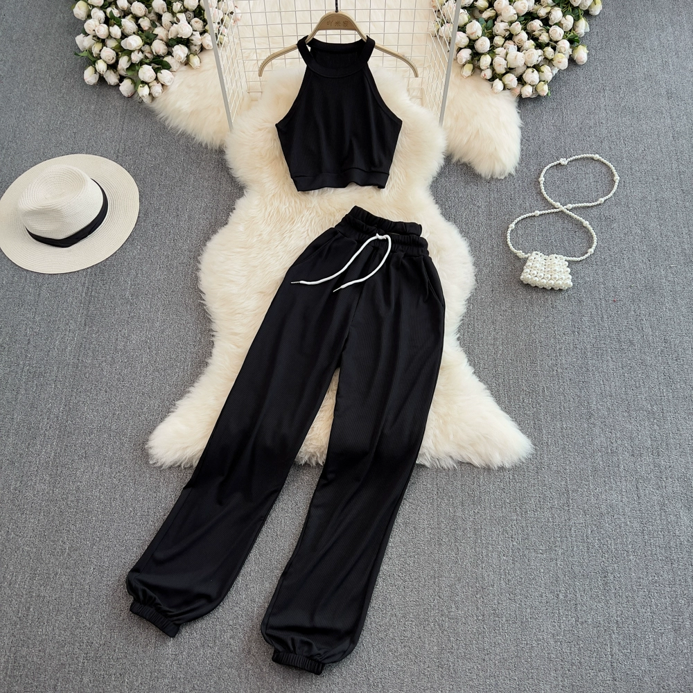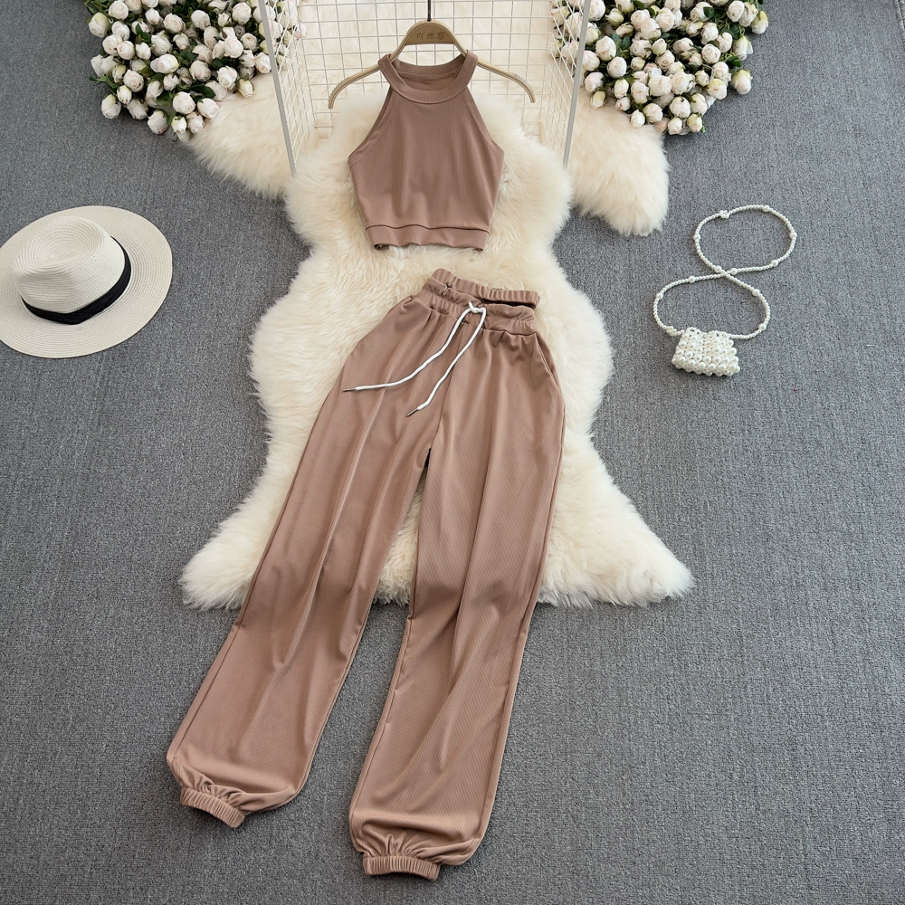 | nameOriginal | Fashion Suit Women's Round Neck Halter Vest Two-piece Set Loose High Waist Slimming Leg Pants Elastic Waist Casual Pants |