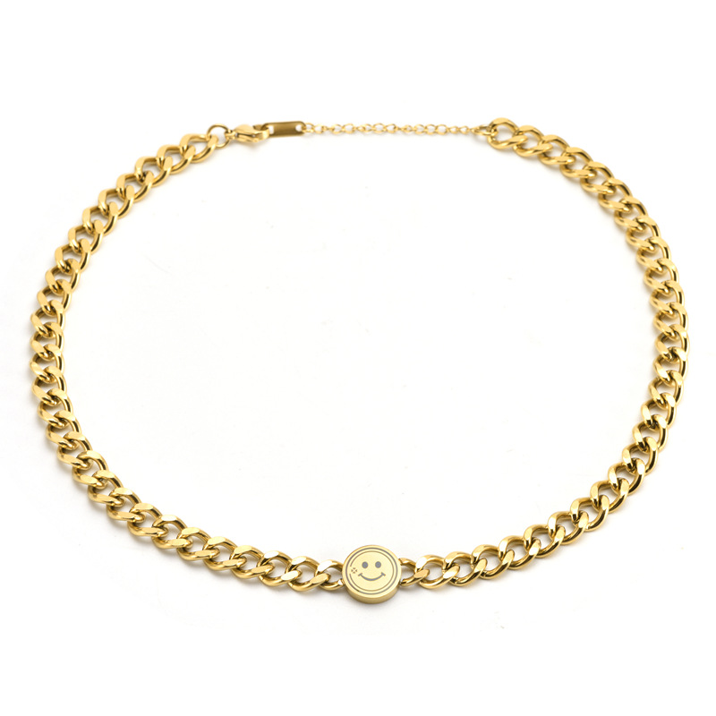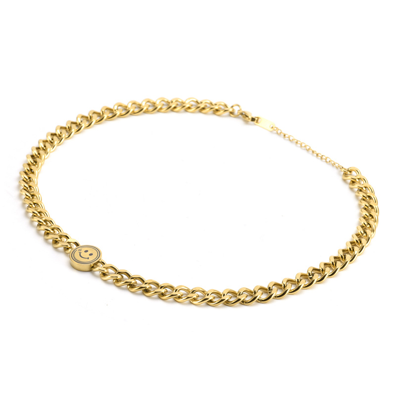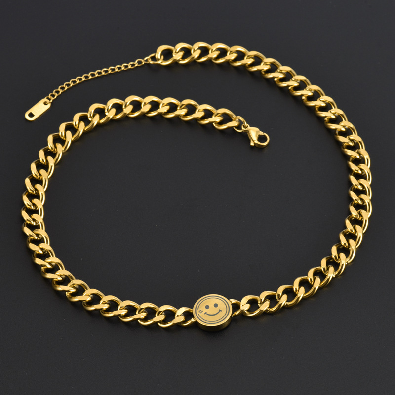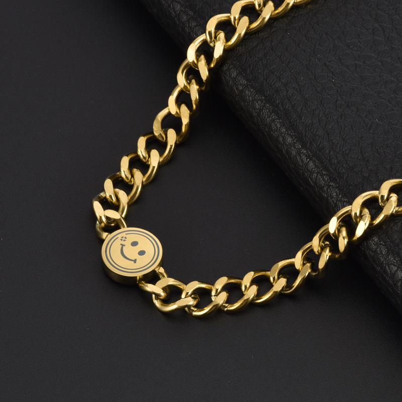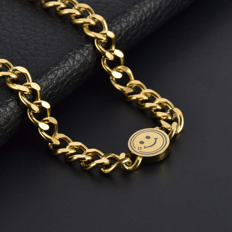 Fashion titanium steel clavicle chain European and American trendy ins explosive stainless steel Cuban chain smiley face bracelet necklace
