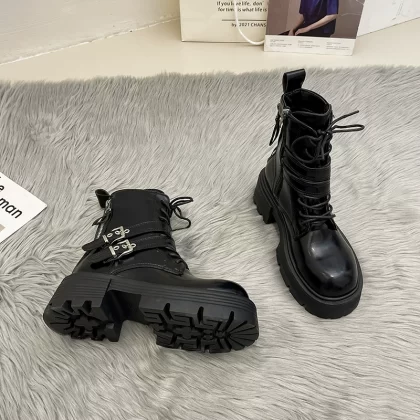 Fashion tribal double zipper spring and autumn thick sole boots