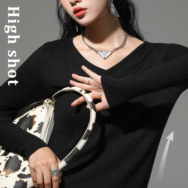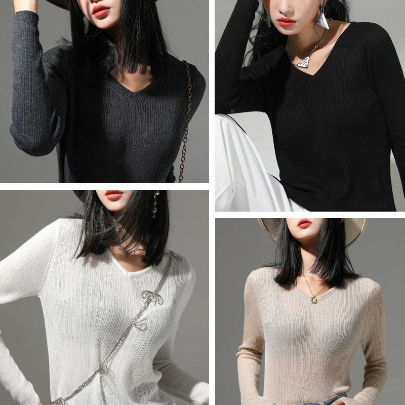 | nameOriginal | Fashion V-neck Knitted Solid Color Base Shirt Women's Inner Spring and Autumn 2024 Slim-fit Sexy Long-sleeve Niche Design Top |