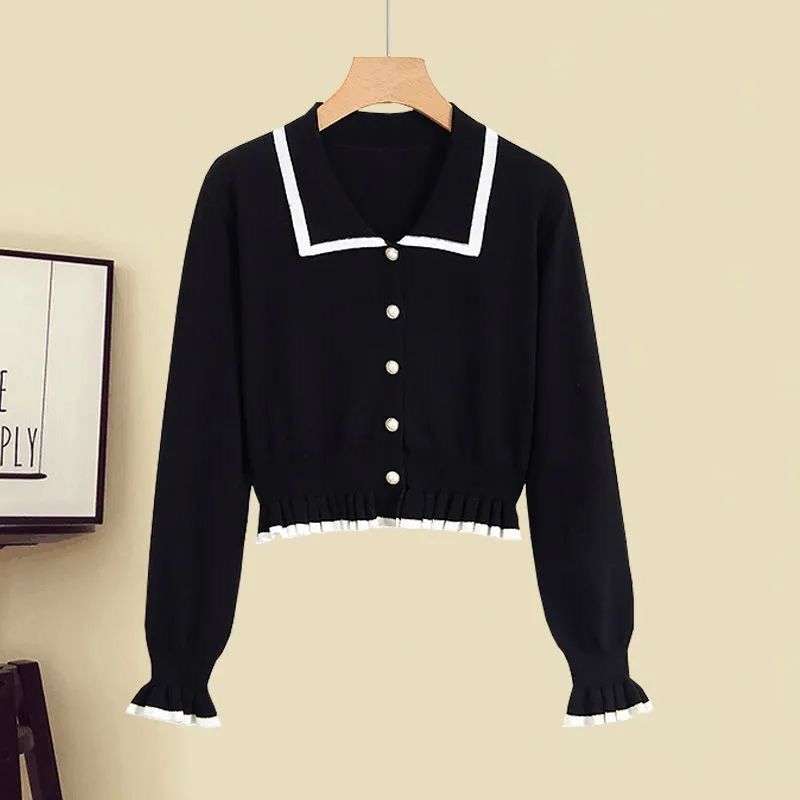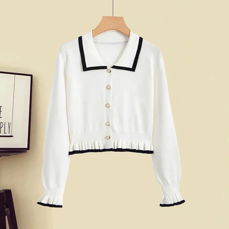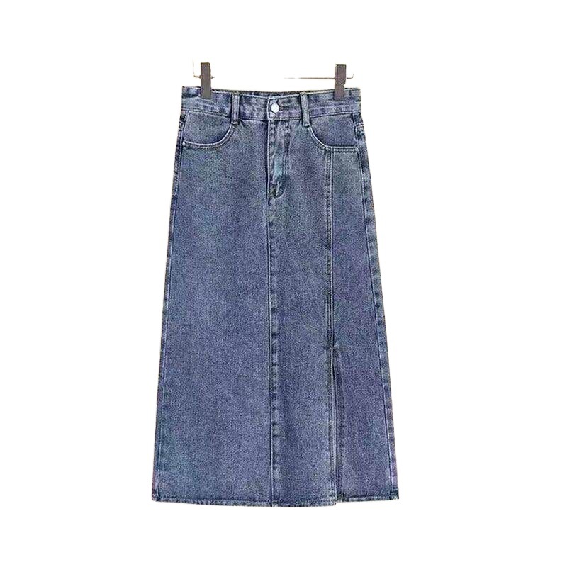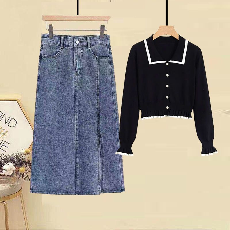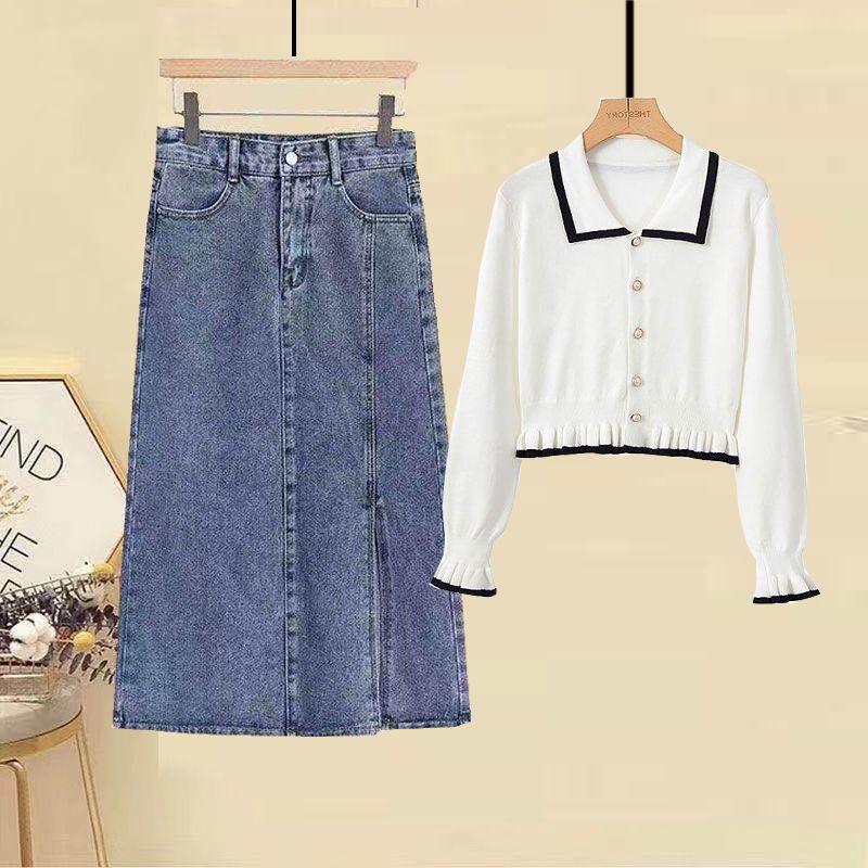 Fashion women’s fat sister 2024 autumn new sweet age-reducing long sleeve top slim denim skirt suit