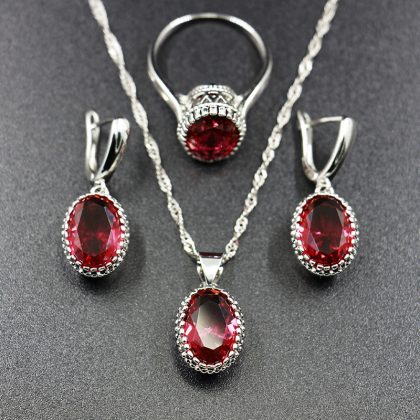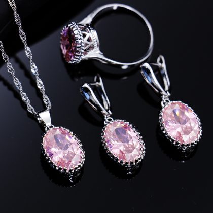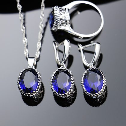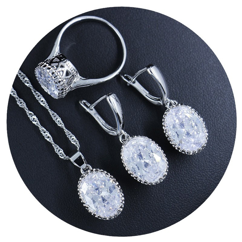 | nameOriginal | Fashion zircon necklace earrings ring three-piece set Oval zircon jewelry suit in stock wholesale multi-color optional |