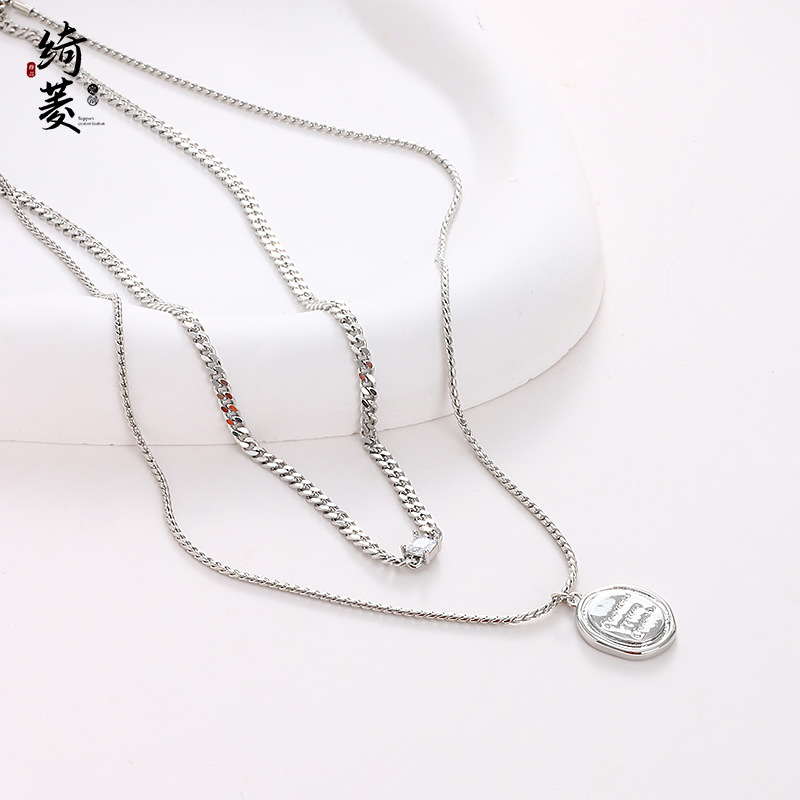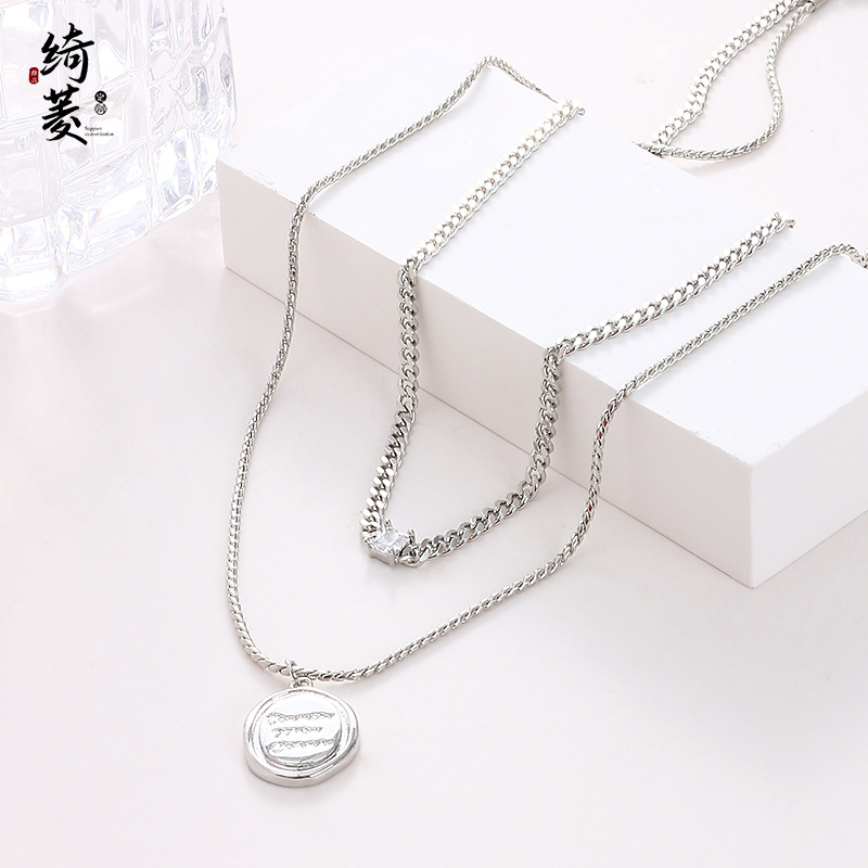 | nameOriginal | Fashionable All-match Double-layer Fold Letter Round Pendant Necklace Accessories Women's Summer Color-free High-end Clavicle Necklace Chain |