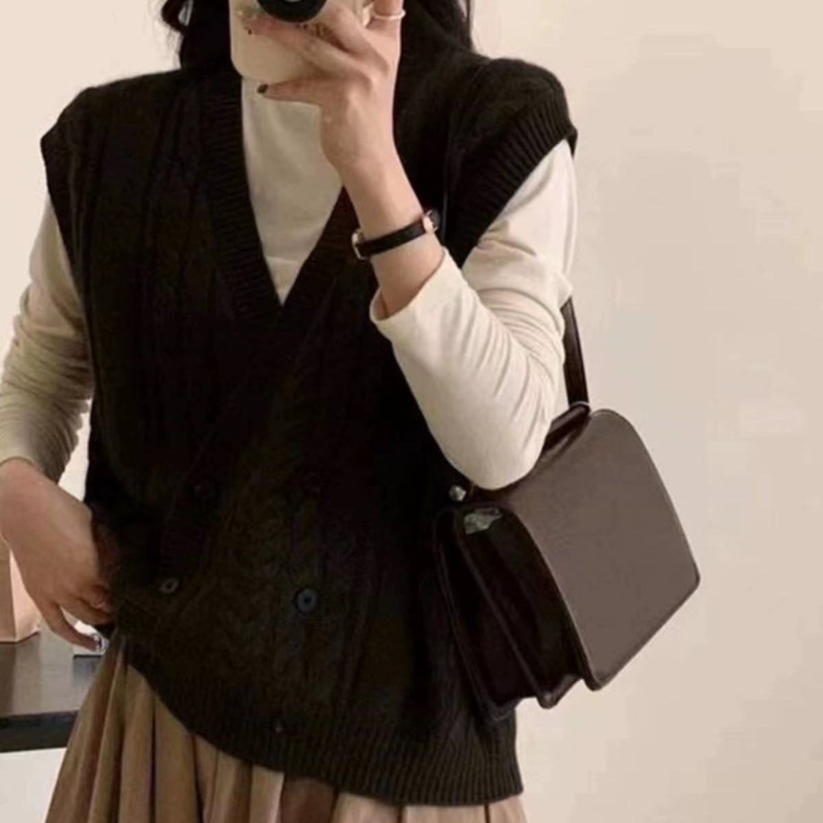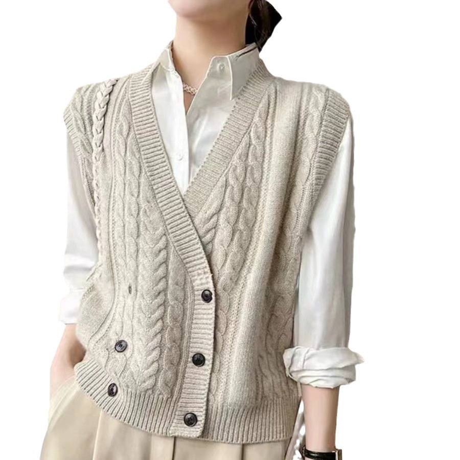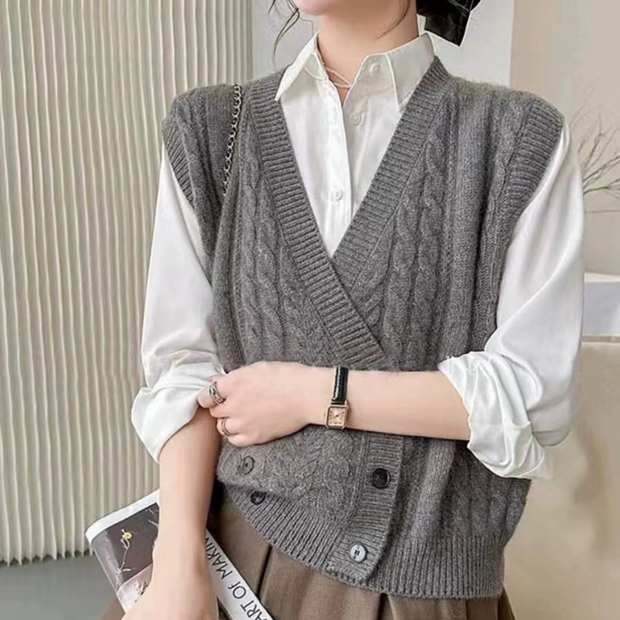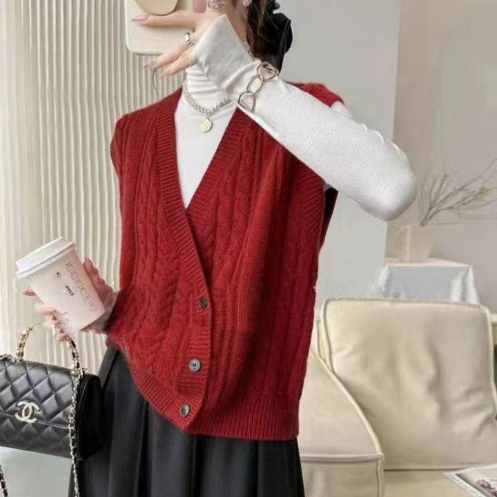 Fashionable All-match Loose Slim Vest Autumn and Winter New Stacked Sleeveless Top V-neck Twist Design Sweater for Women