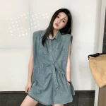 | nameOriginal | Fashionable and cool denim irregular diagonal button sleeveless shirt |