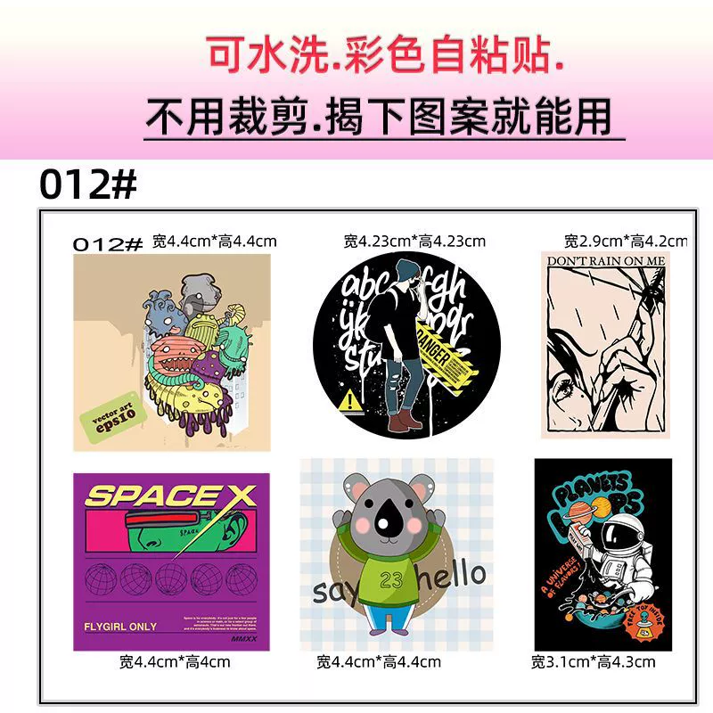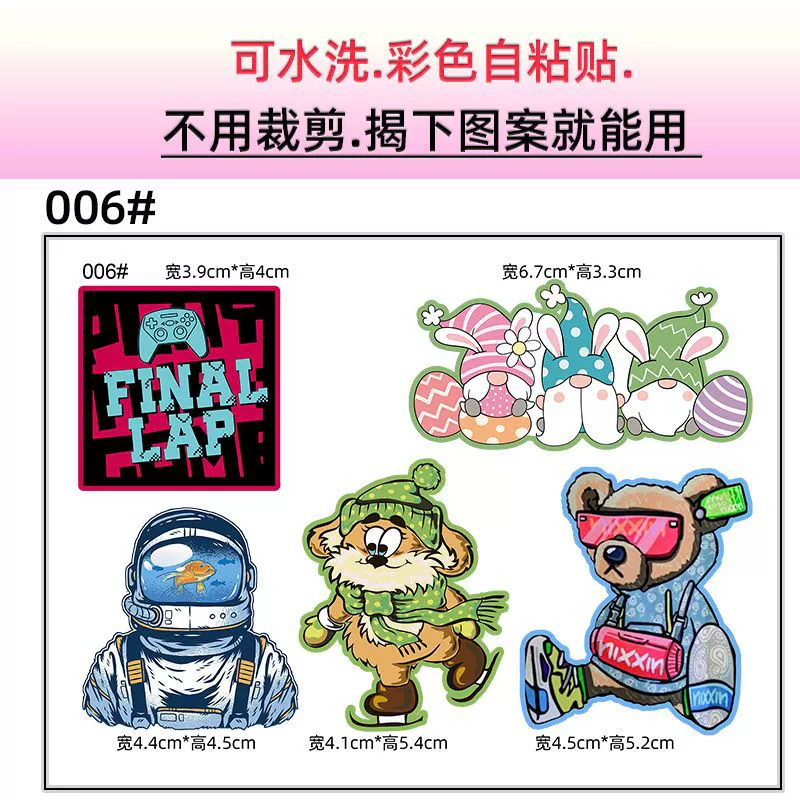 | nameOriginal | Fashionable and cute cartoon cloth stickers for waterproof clothes self-adhesive small patch stickers for down jackets and cotton clothes to repair holes and decorative stickers |