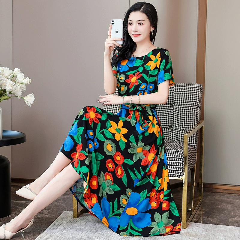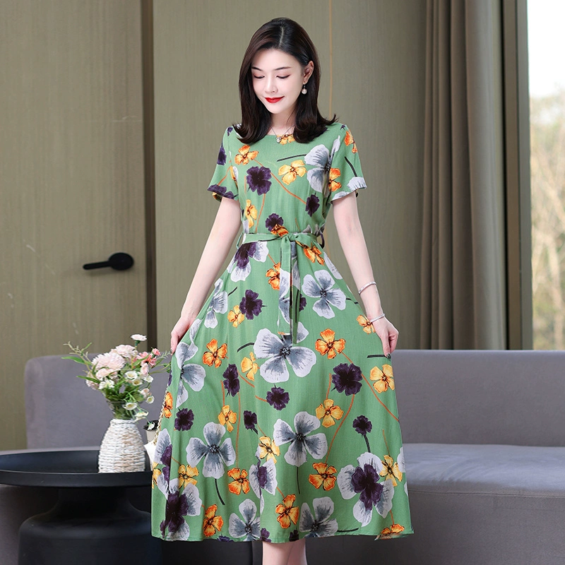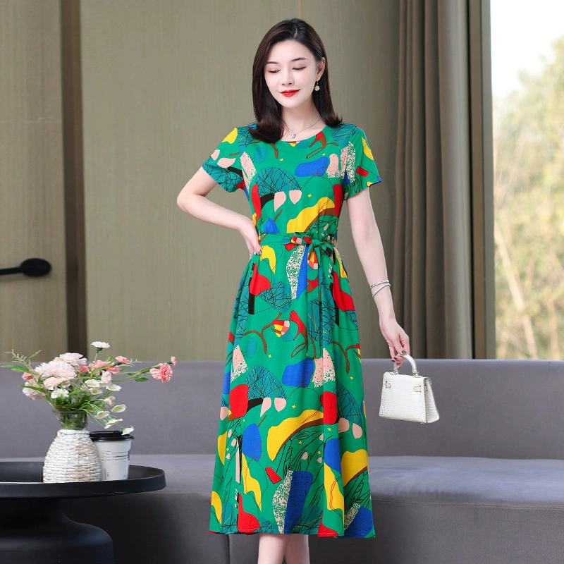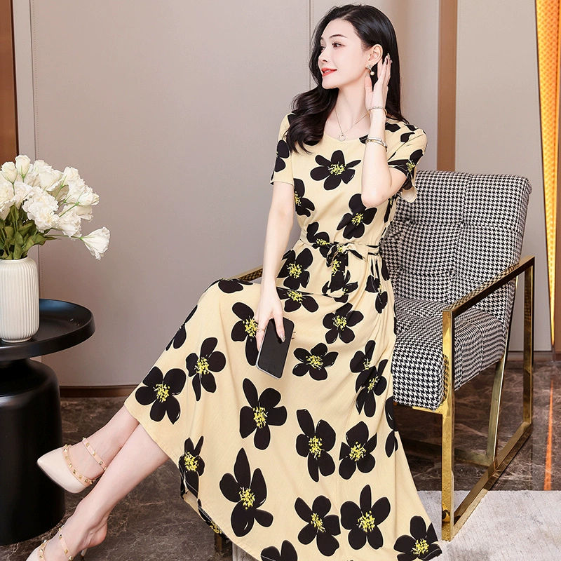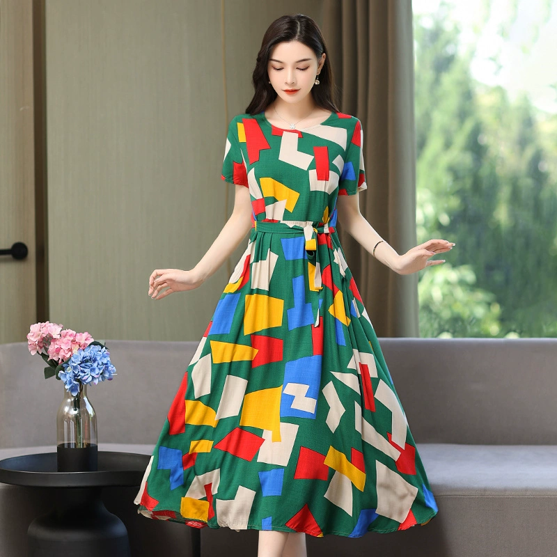 | nameOriginal | Fashionable and Elegant Dress with Belt Printed Solid Color Plus Size Slim Fit Waist New Summer Midi-Length Skirt |