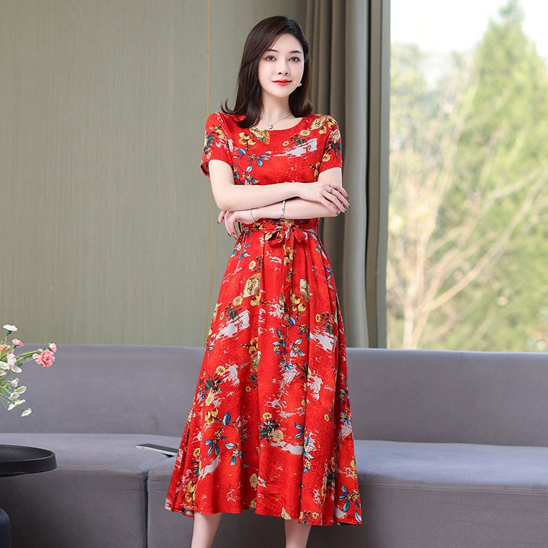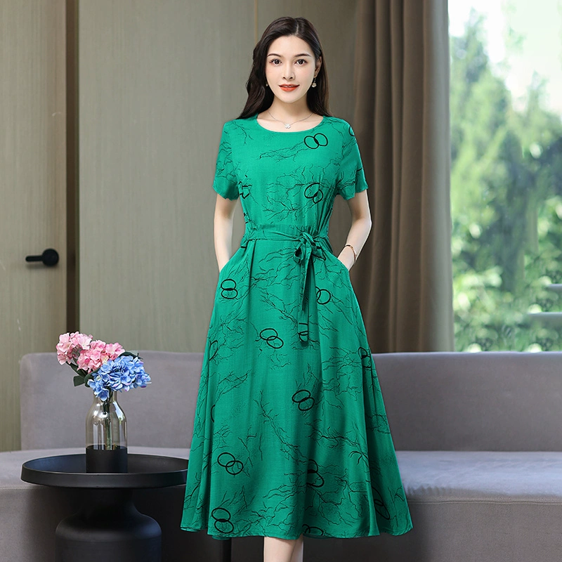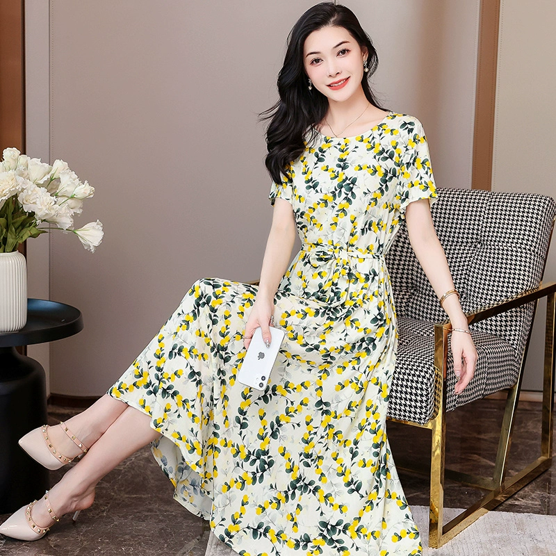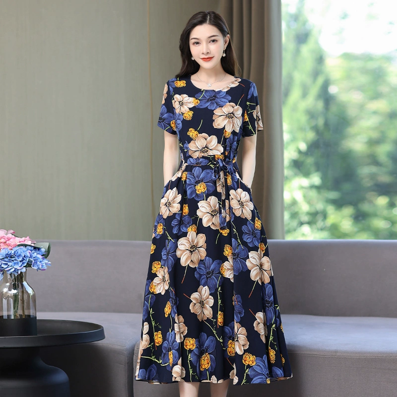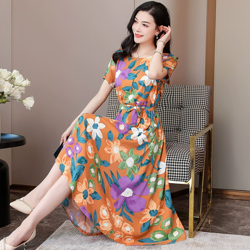 | nameOriginal | Fashionable and Elegant Dress with Belt Printed Solid Color Plus Size Slim Fit Waist New Summer Midi-Length Skirt |