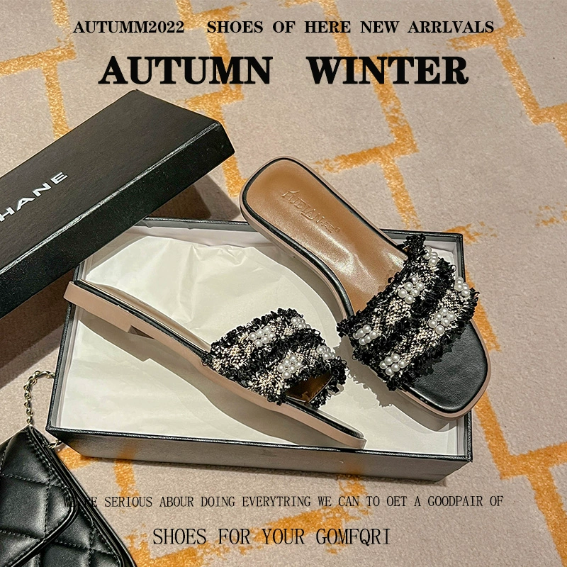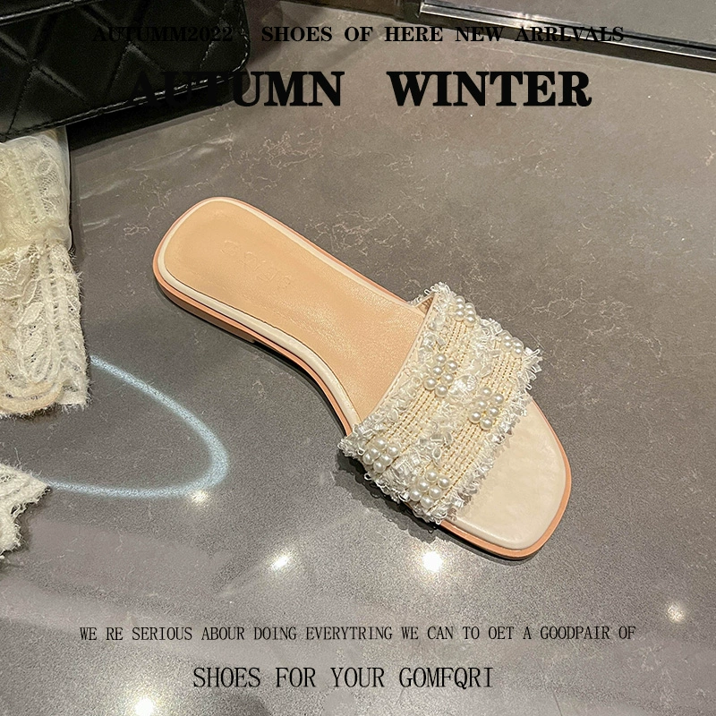 Fashionable and high-end flat-soled ins trendy slippers for summer outer wear