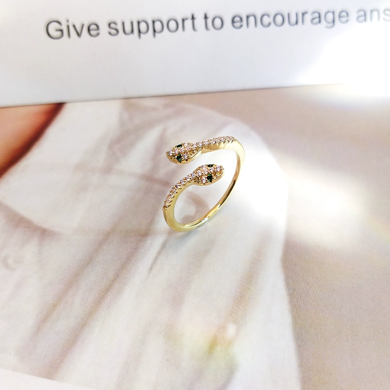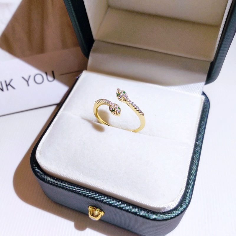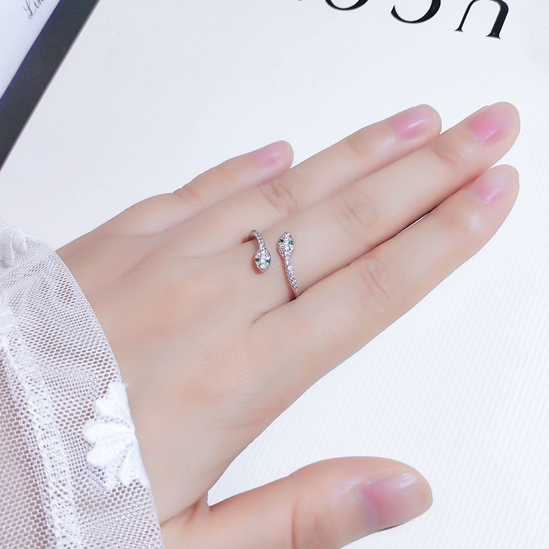 Fashionable and personalized diamond snake head high-end ring for women ins fashion niche design animal temperament open tail ring