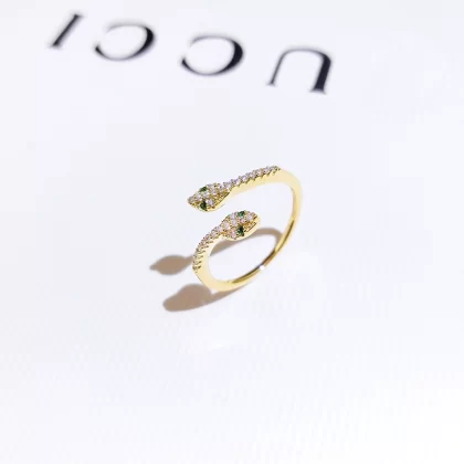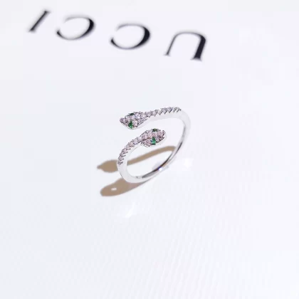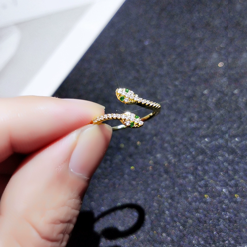 Fashionable and personalized diamond snake head high-end ring for women ins fashion niche design animal temperament open tail ring