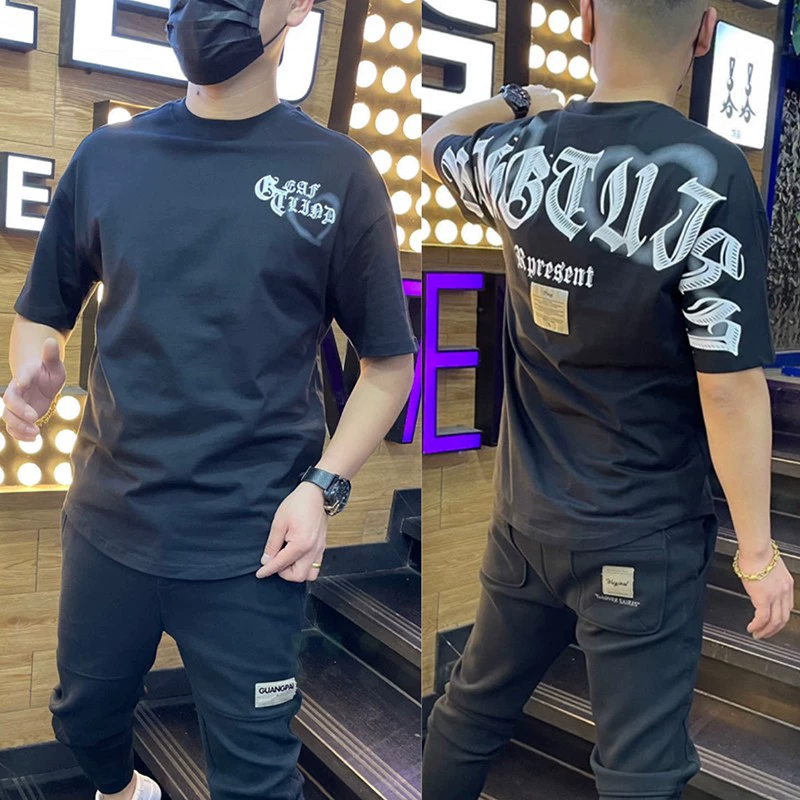 Fashionable and fashionable pure cotton slim half-sleeved men’s summer Korean version ins internet celebrity same style fashion brand handsome short-sleeved T-shirt for men