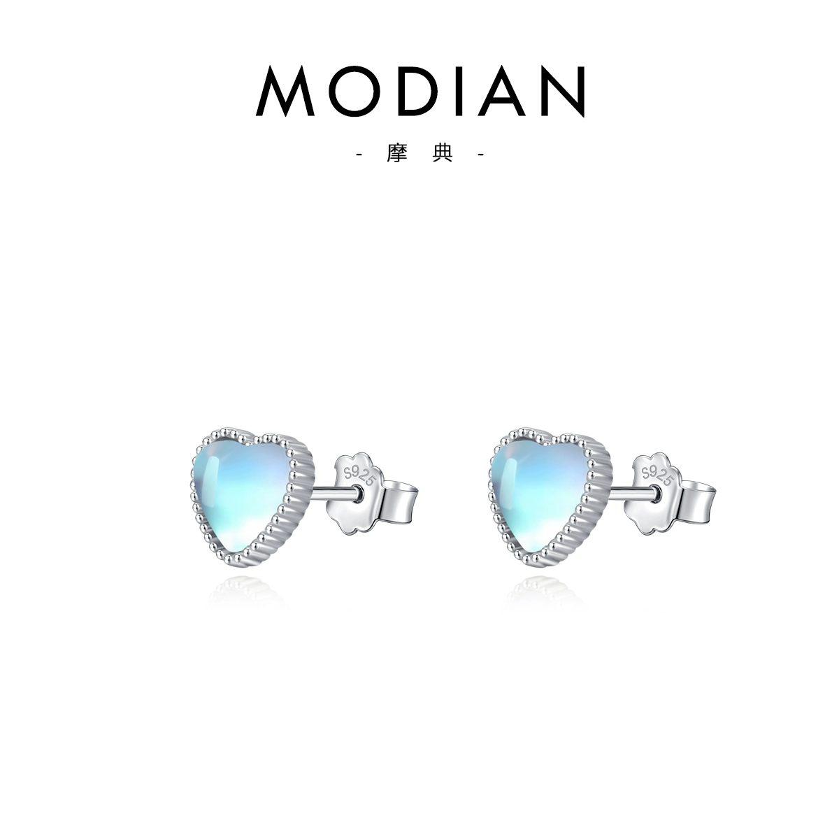 Fashionable and simple heart-shaped cute earrings for women moonstone