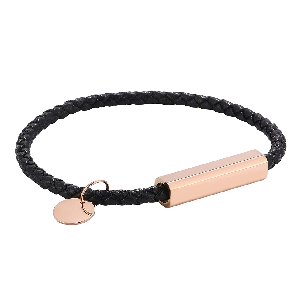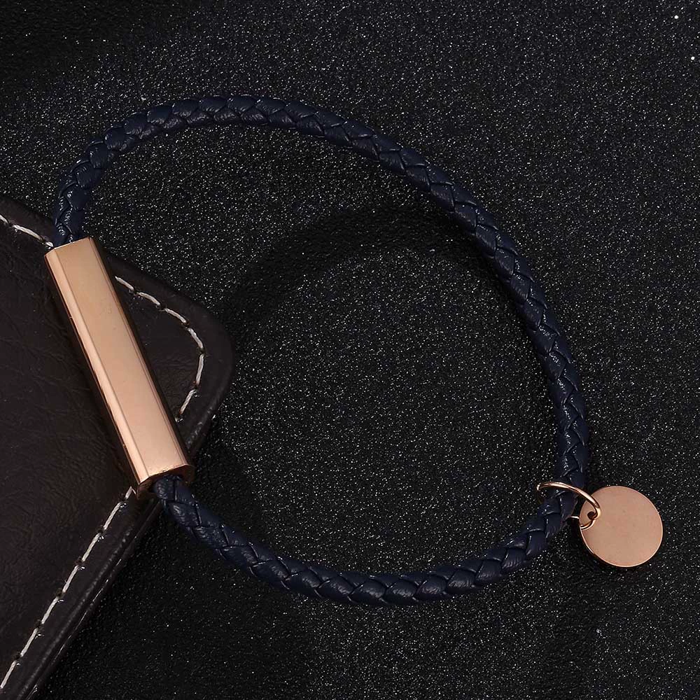 | nameOriginal | Fashionable and simple single-ring leather rope titanium steel magnet buckle couple bracelet European and American creative lettering LOGO personalized hand jewelry |