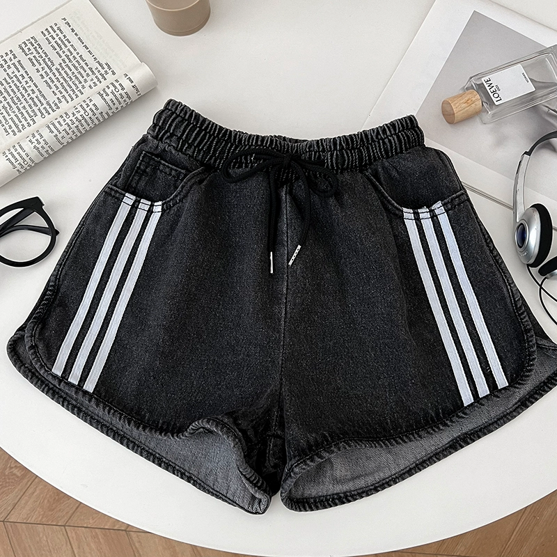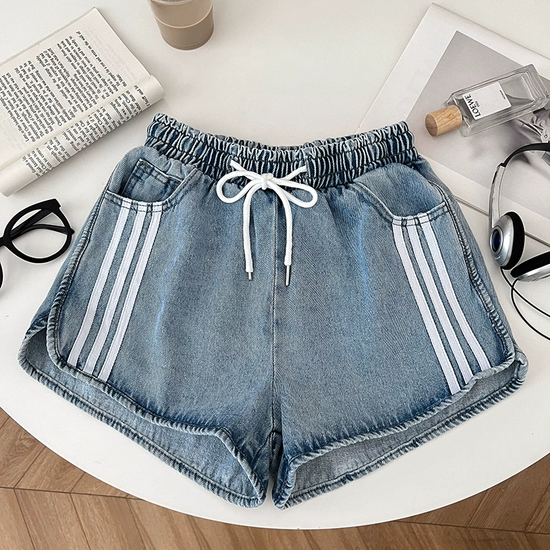 Fashion versatile pine tight waist denim casual pants drawing rope