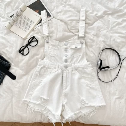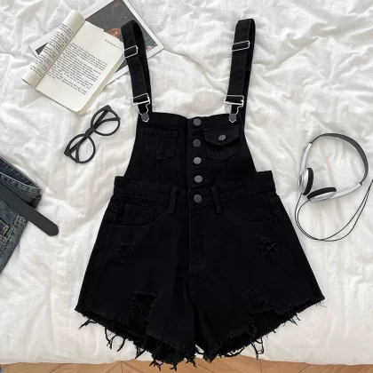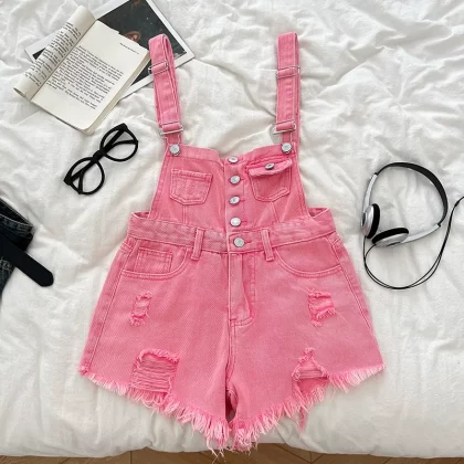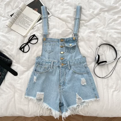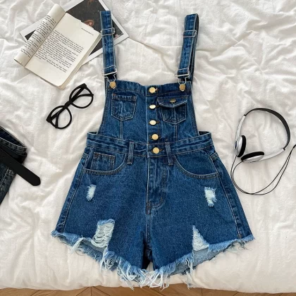 | nameOriginal | Fashionable and versatile single-breasted ripped denim overalls |