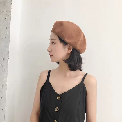 Fashionable and versatile thin beret for women, Japanese style pumpkin hat, spring and summer black hat, British internet celebrity women's hat