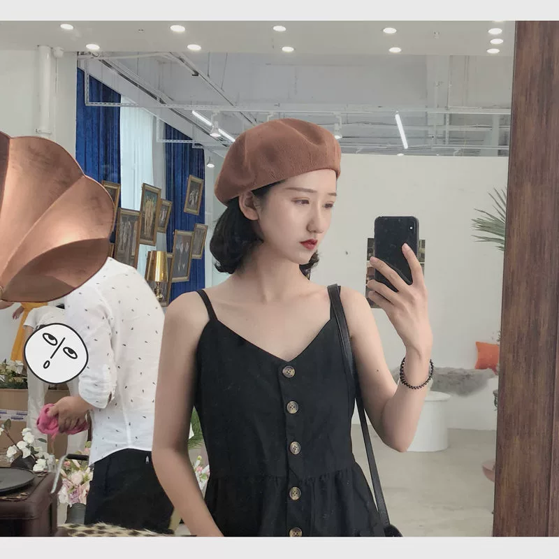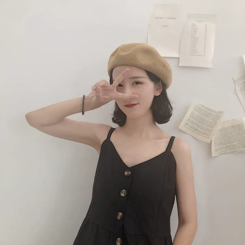 Fashion versatile thin beret lady Japanese pumpkin hat spring and summer black hat British net red female hat