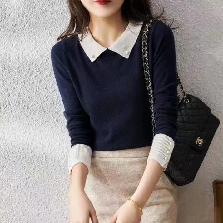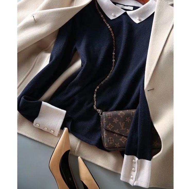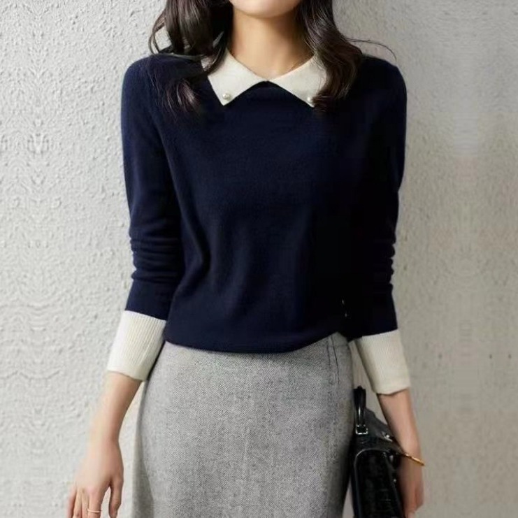 | nameOriginal | Fashionable beaded contrast color wool sweater for women 2023 autumn and winter New loose slimming age-reducing long sleeve sweater top fashion |