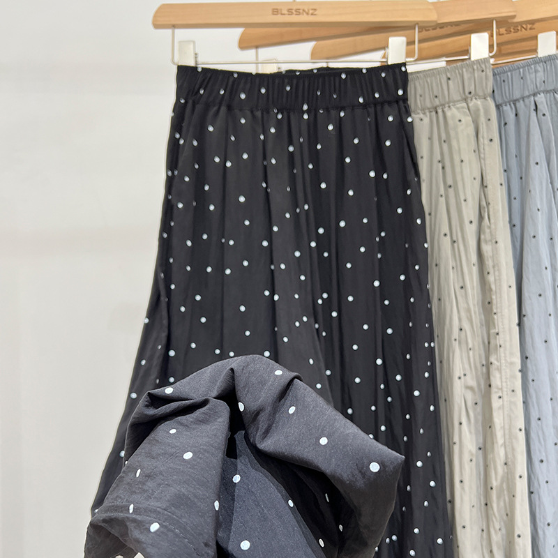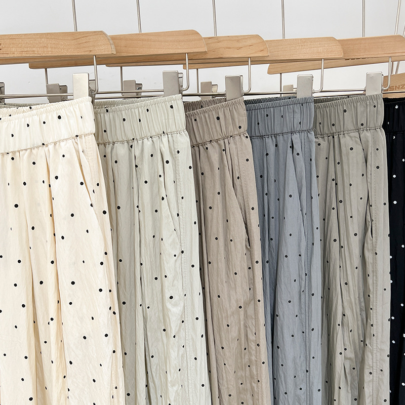 | nameOriginal | Fashionable brand wave dot gray wide leg pants women's summer 2024 new elastic waist sagging slim loose quick-drying casual pants |
