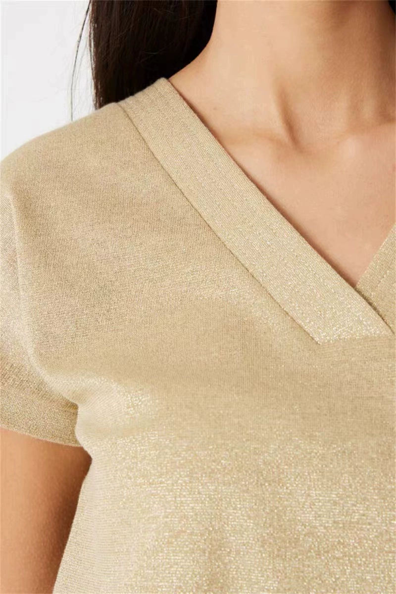 | nameOriginal | Fashionable bright silk outer V-neck T-shirt high two-color pullover |