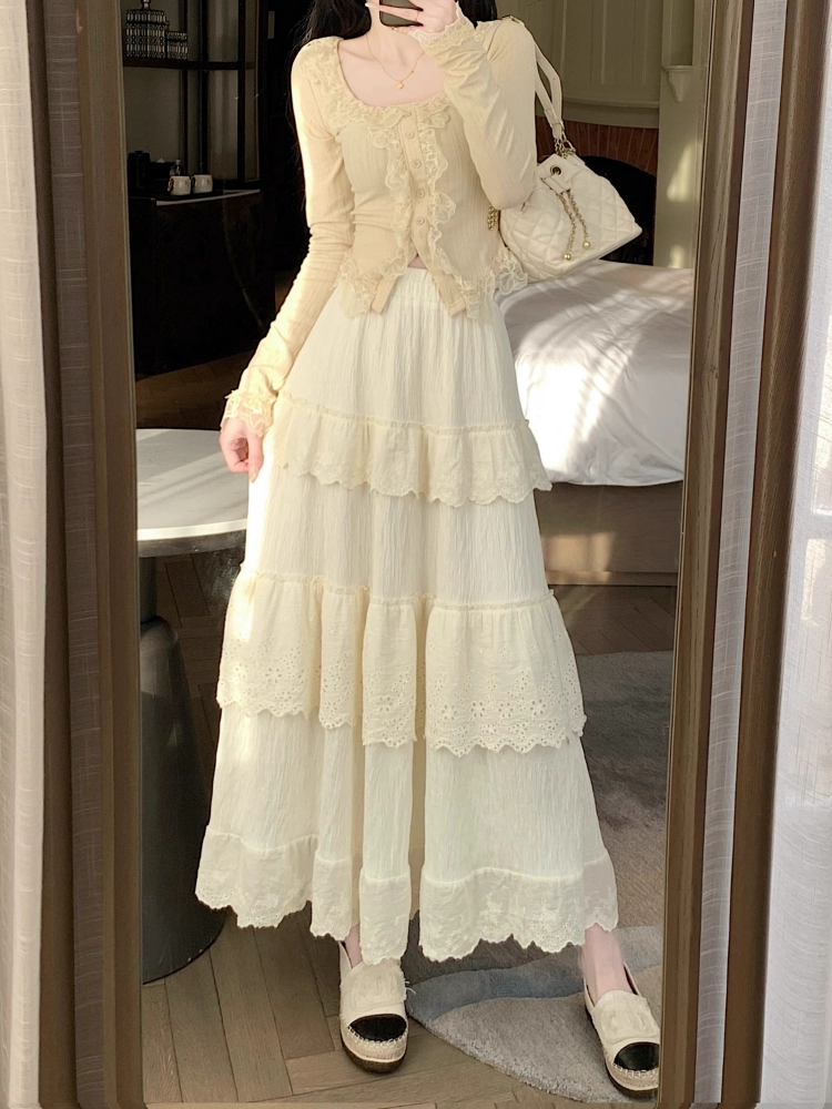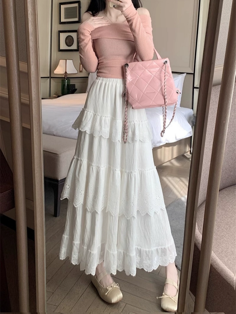 | nameOriginal | Fashionable Cake Skirt Spring Korean Style Pleated Long Crochet Flower |