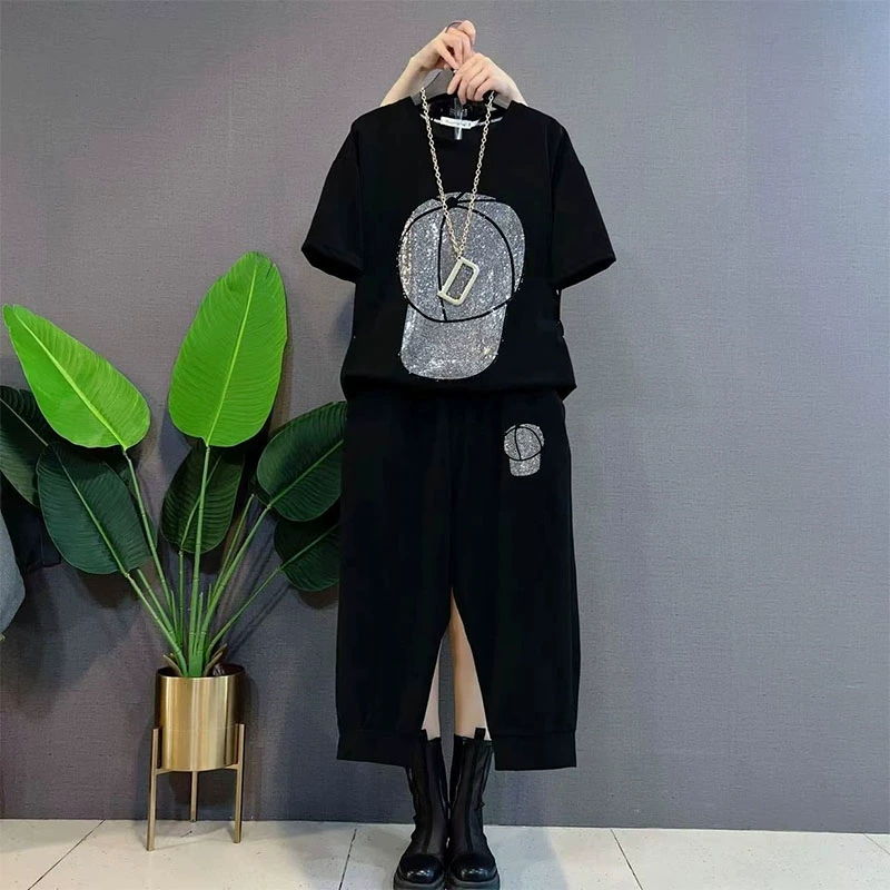 | nameOriginal | Fashionable casual foreign style diamond-encrusted fat mm short-sleeved trousers |