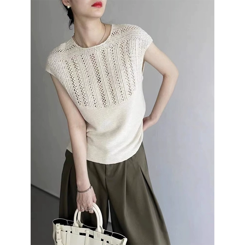 | nameOriginal | Fashionable casual simple ice silk thin knitted T-shirt women's summer hollow design waistcoat niche flying sleeve top |