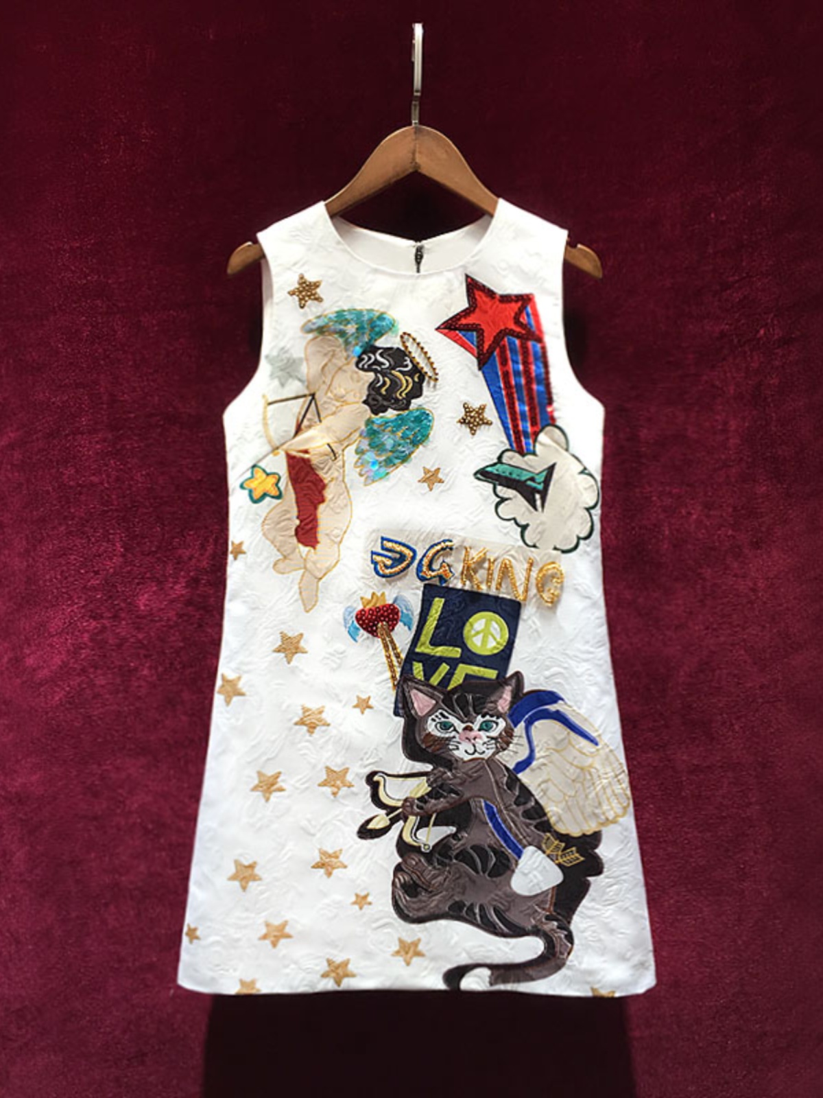 | nameOriginal | Fashionable cat print high-end exquisite heavy industry beading high-end a-line dress 2024 new women's summer |