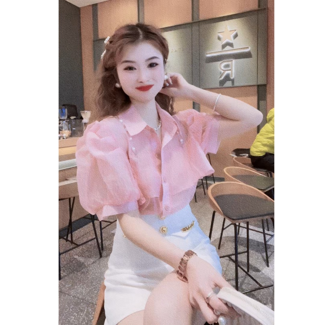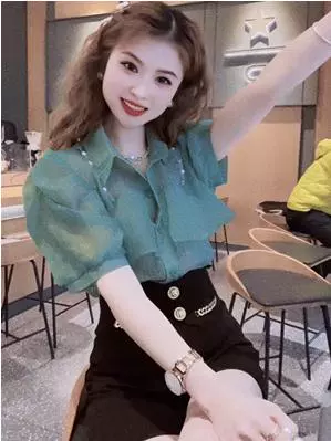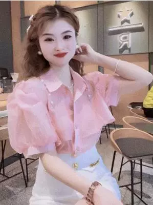 | nameOriginal | Fashionable chiffon shirt with puff sleeves and beading |