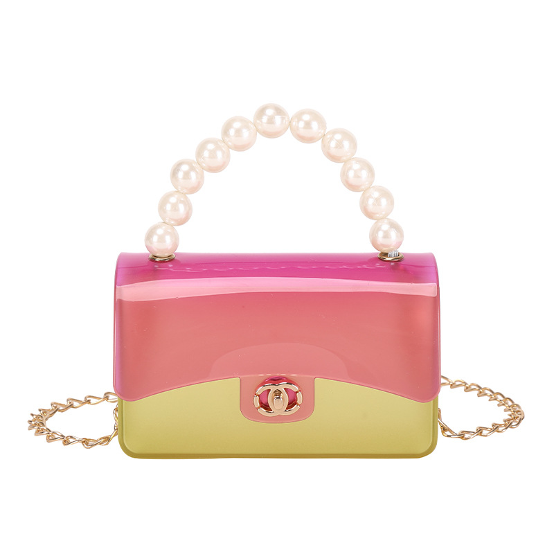 | nameOriginal | Fashionable contrast color jelly bag trendy Pearl handbag shoulder messenger bag sweet lipstick bag chain lock small bag |