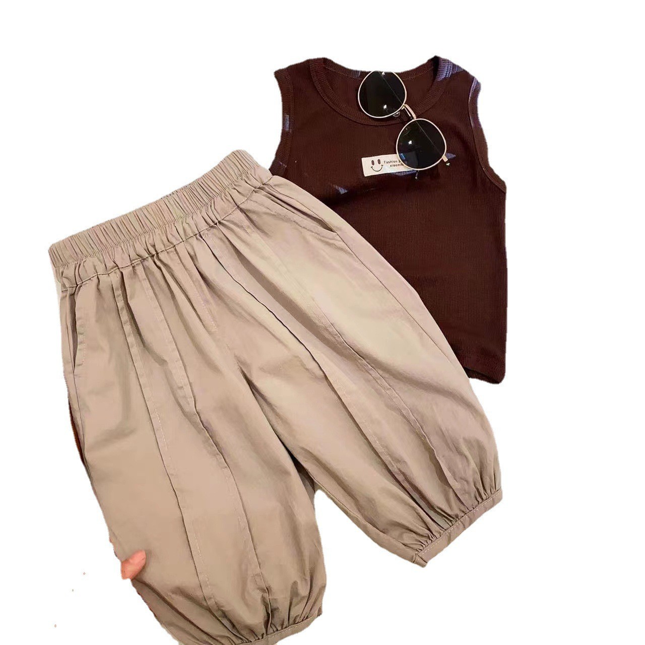 | nameOriginal | Fashionable Cute Girl's Loose Belt Pleated Stylish Solid Color Cropped Wide Leg Pants 2024 Summer Fashion |