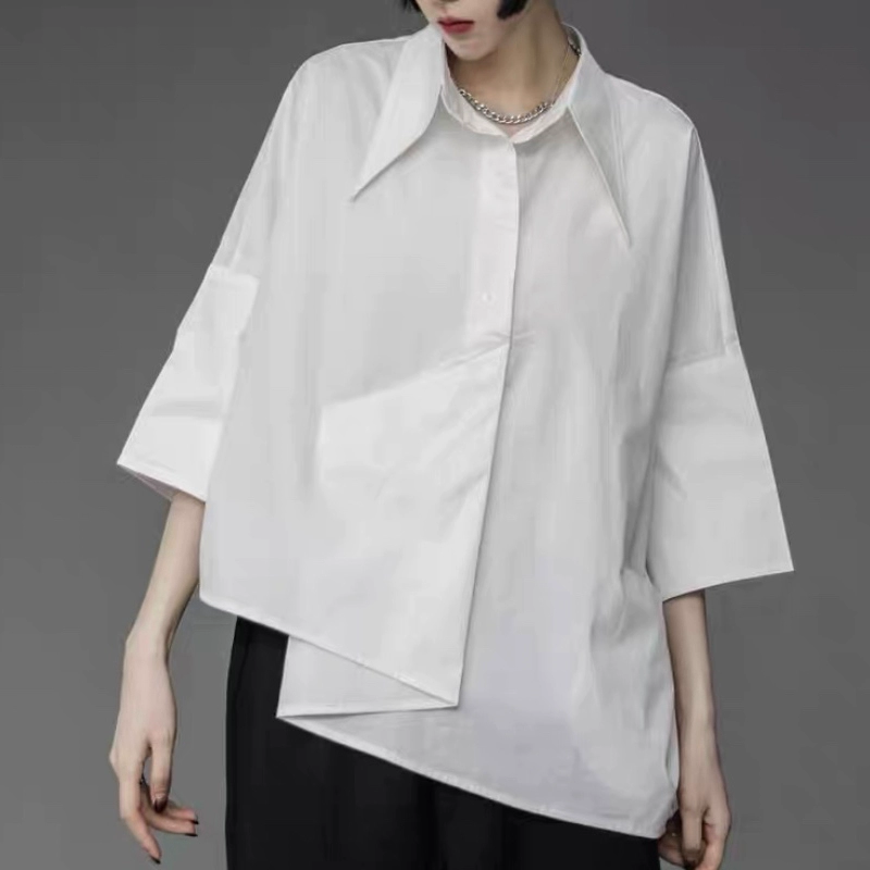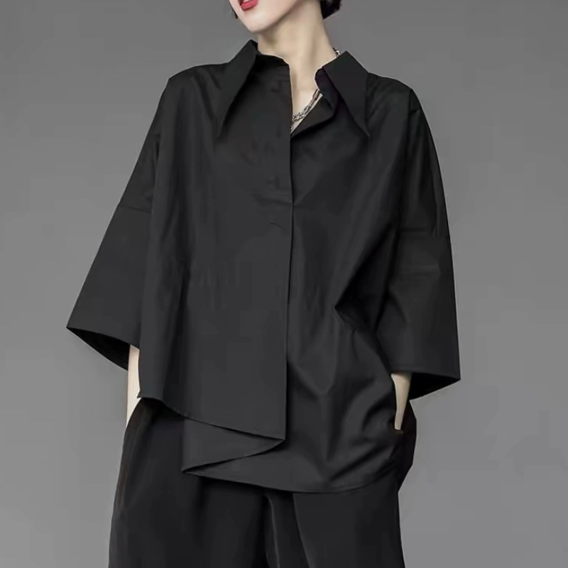 Fashionable design niche asymmetrical shirt for women 2024 summer new loose casual versatile black top